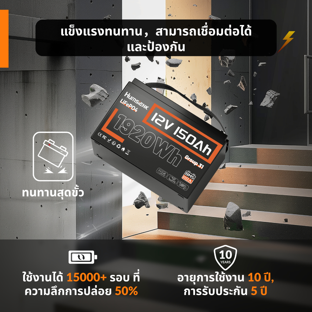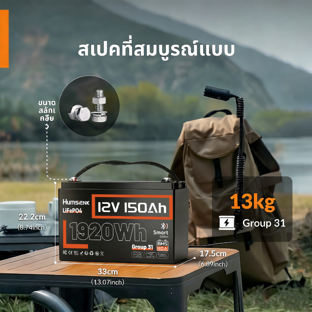 Humsienk แบตเตอรี่ LiFePo4 โซลาร์เซลล์ 12V 100Ah 150Ah, BMS 110A; เหมาะสำหรับใช้บนเรือและมอเตอร์ Troling