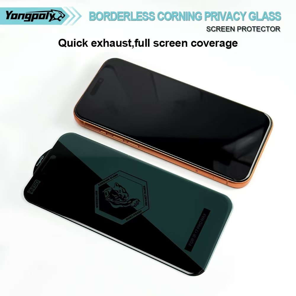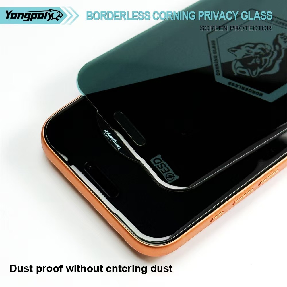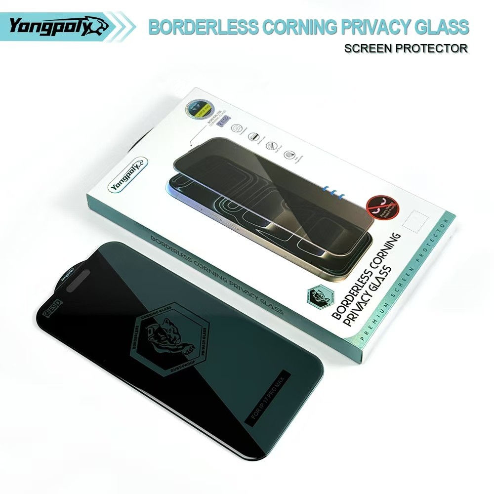 Yongpoly Corning Privacy ฟิล์มกระจกกันส่อง 30° เต็มจอ | Privacy Tempered Glass สำหรับ iPhone 16PLUS 15PRO 14PRO17PROMAX