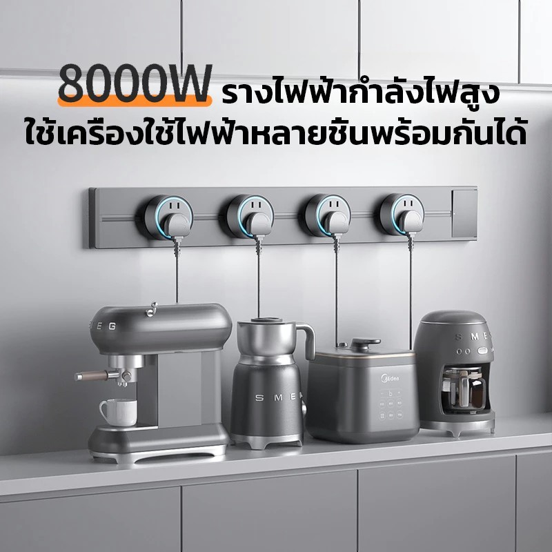 ปลั๊กรางไฟติดผนังรุ่นใหม่ เลื่อนได้ มีสวิตช์ กำลังไฟสูง 8000วัตต์ ใช้งานสะดวก ปลอดภัย ทันสมัย