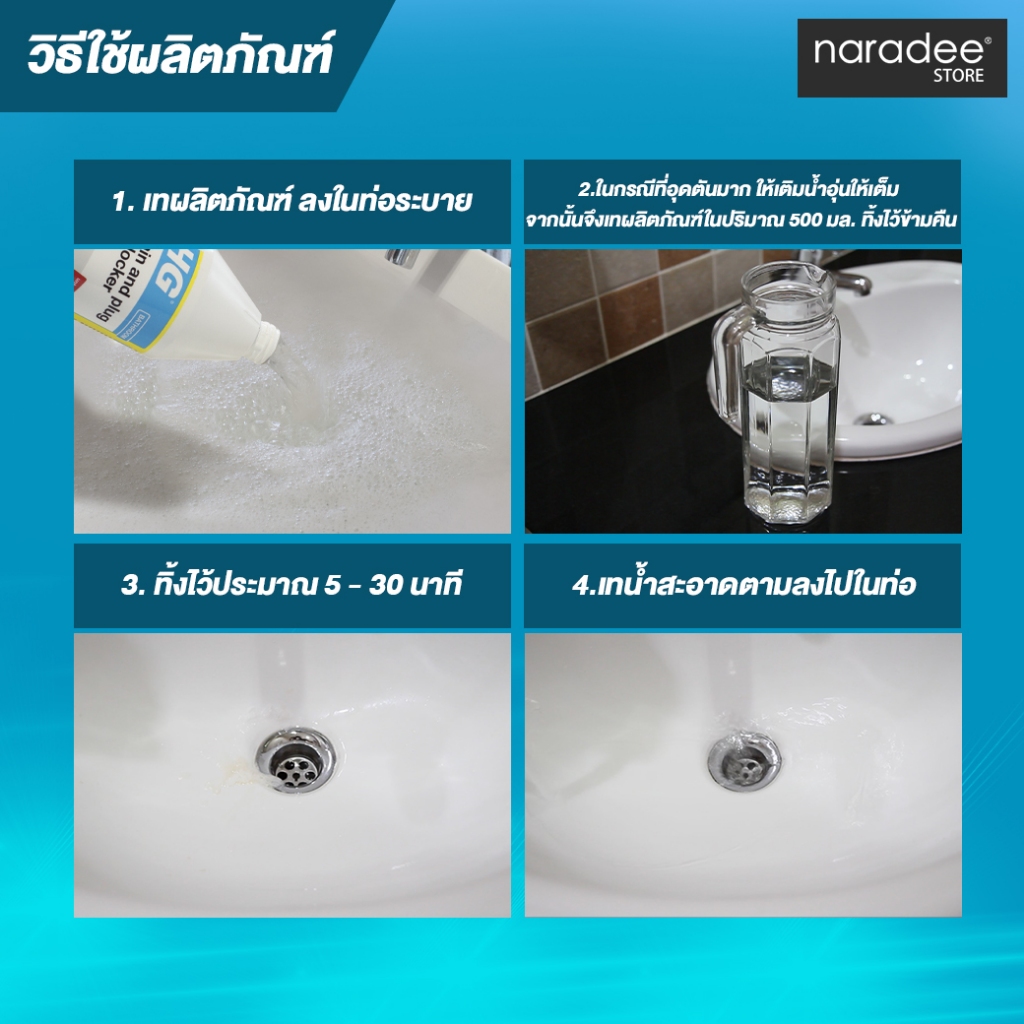 HG ผลิตภัณฑ์ขจัดท่ออุดตัน (ลิควิด เดรน อันบล็อคเกอร์) ขนาด 500 มล. - แก้ปัญหาท่อระบายในห้องนํ้าอุดตัน