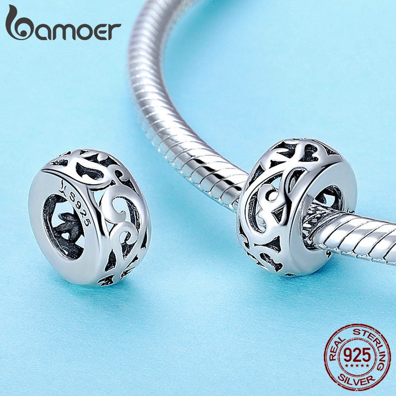 BAMOER เครื่องประดับสร้อยข้อมือลูกปัดสีเงิน