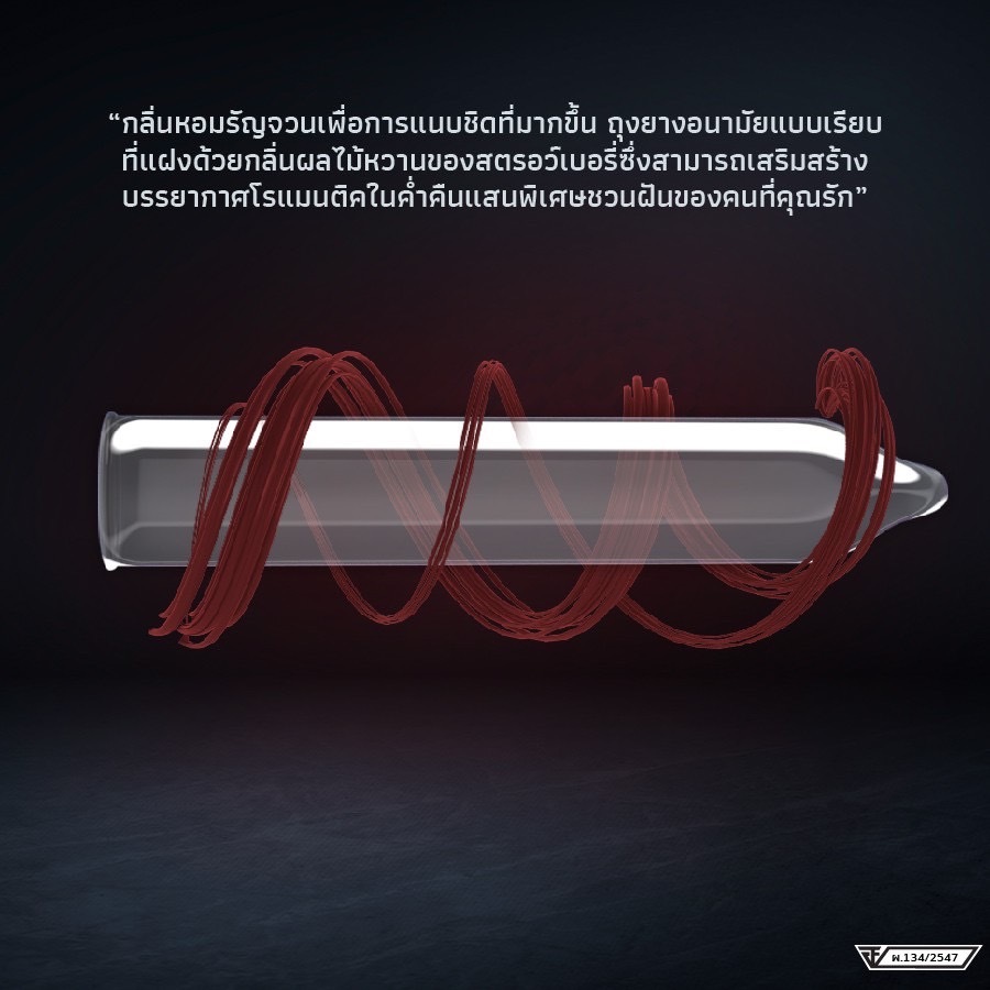 ถุงยางอนามัยแฟร์ กลิ่นสตรอเบอร์รี่ ขนาด 49มม. (3ชิ้น) 1กล่อง Faire Strawberry Condom