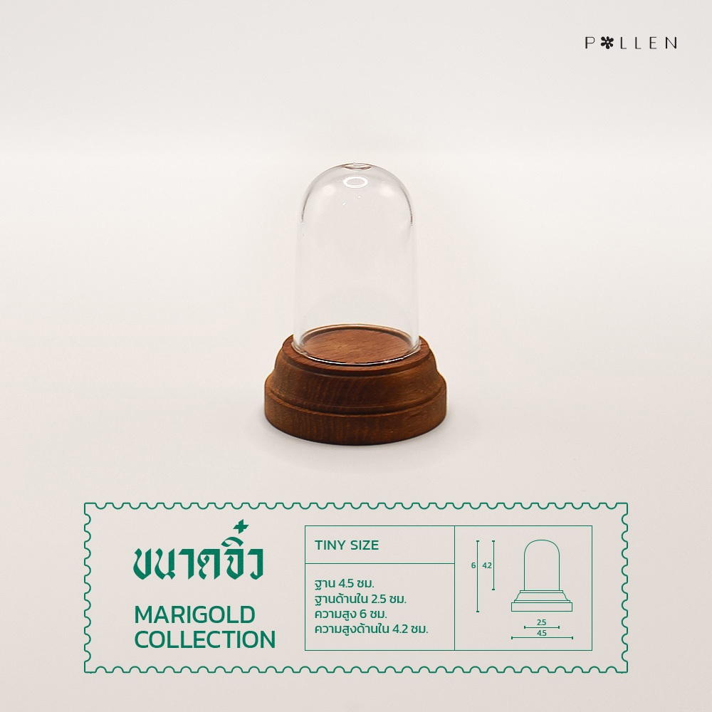 Pollen_collection ครอบพระฐานไม้ รุ่นฐานกลมไม้สัก ครอบอะคริลิคใส (Marigold collection)