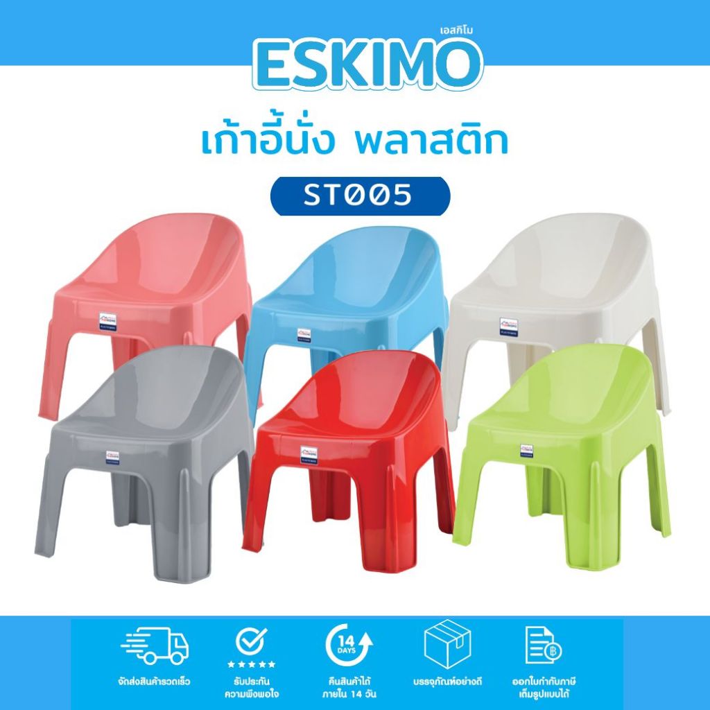ขายดี ESKIMO เก้าอี้พลาสติก แข็งแรง ทนทาน รับได้ 120 Kg. สำหรับนั่ง นั่งซักผ้า ST005