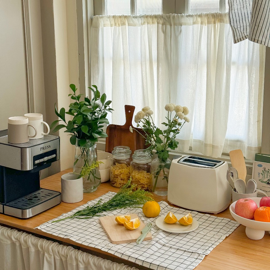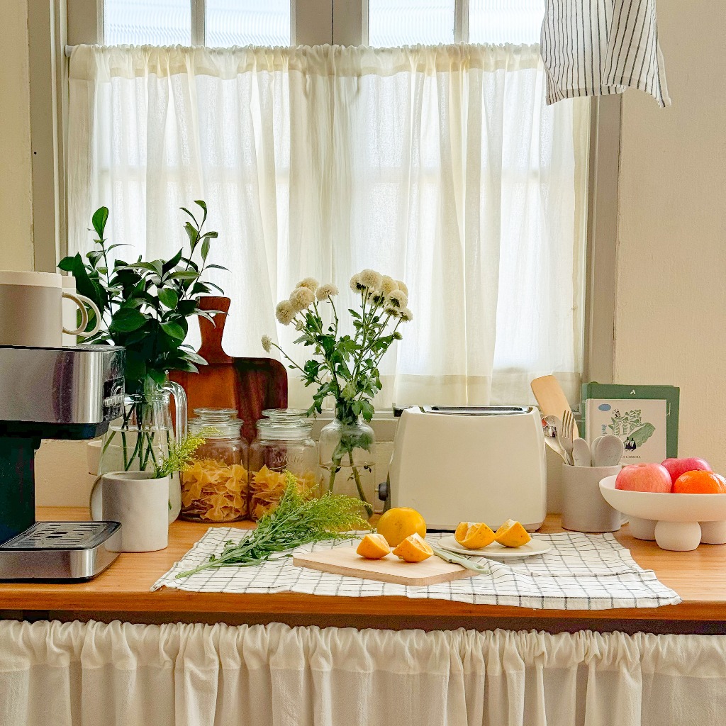 ผ้าม่านเคาน์เตอร์ครัว แบบสอดราว Solstice Home ผ้าม่านสั้น ม่านครึ่งหน้าต่าง เลือกสีเอง สั่งตัดตามขนาด