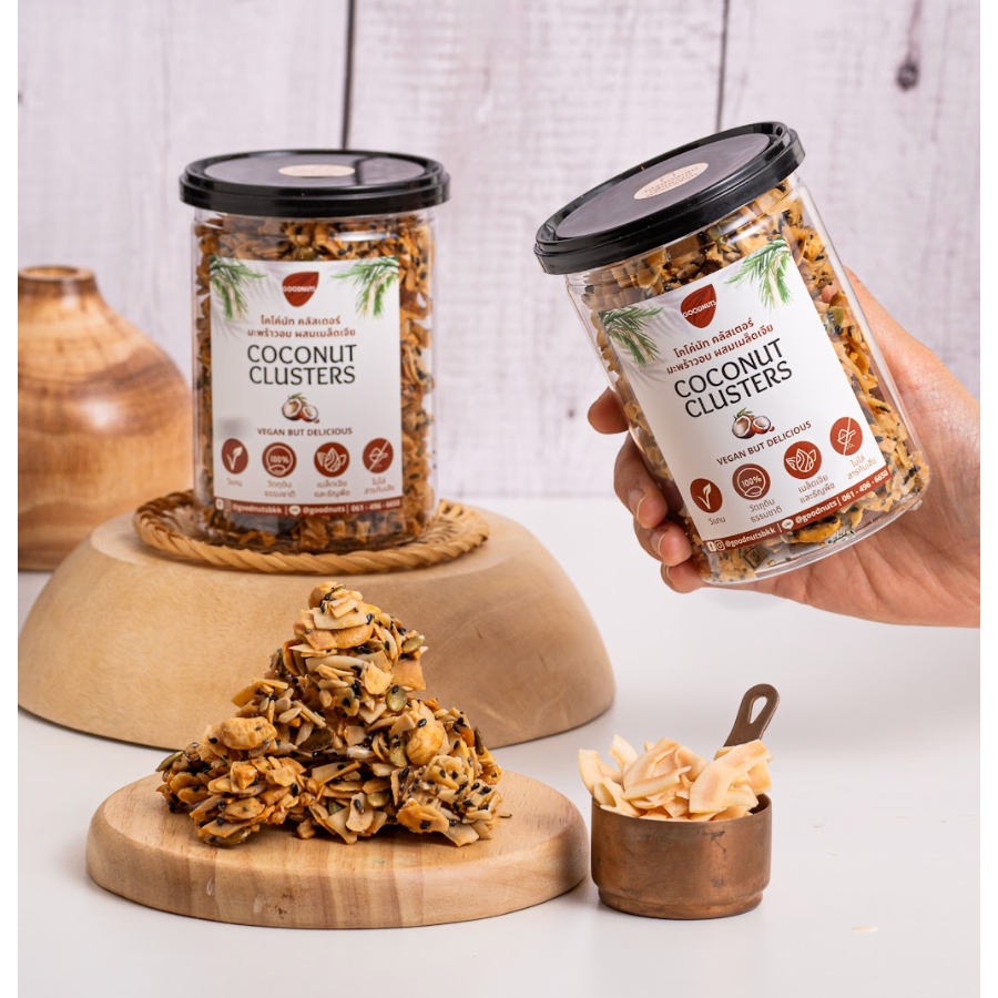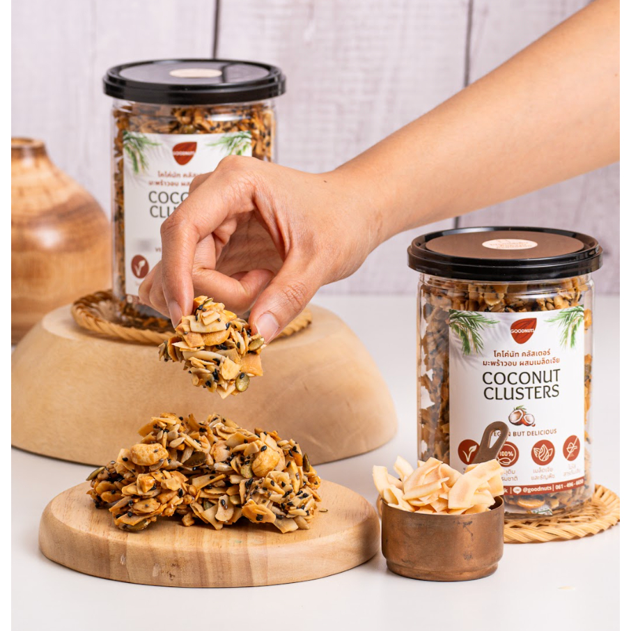 กู้ดนัทส์ โคโค่นัทคลัสเตอร์ มะพร้าวอบผสมเมล็ดเจีย เจ วีแกน 150กรัม Coconut Clusters | Goodnutsbkk