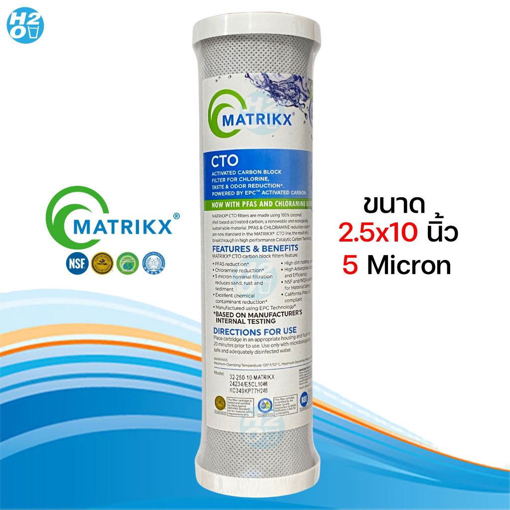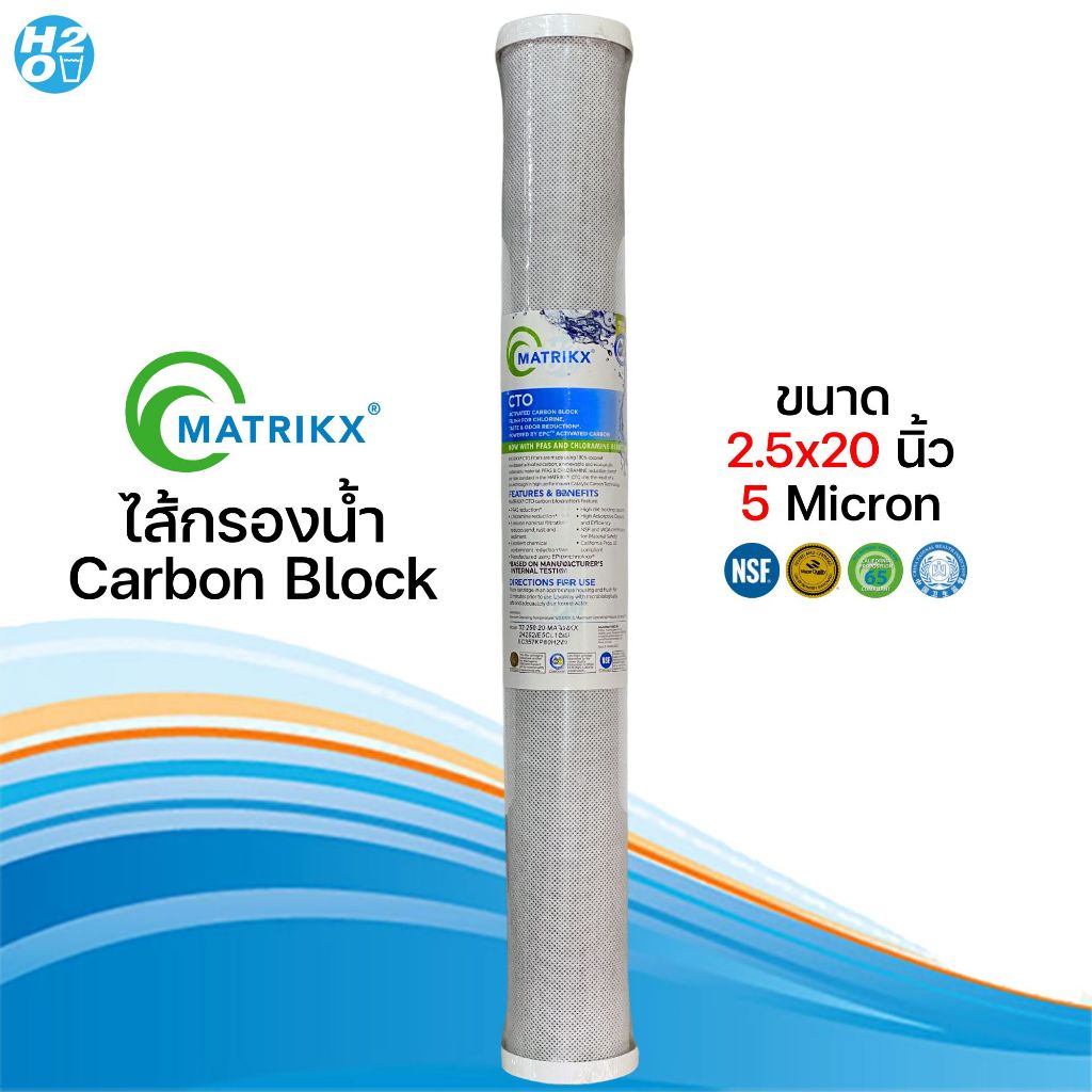 Matrikx ไส้กรองน้ำ ไส้กรองคาร์บอนบล็อค Carbon Block 2.5x10,20 นิ้ว กรองละเอียด 5 ไมครอน CTO USA