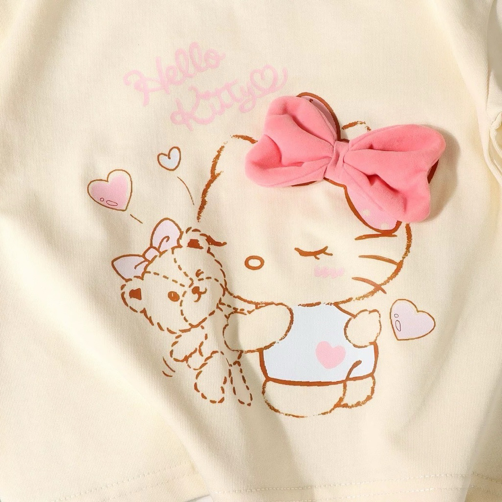 ชุดเซ็ต Kitty แต่งโบว์ 3D กางเกงขาจั๊มลายจุด