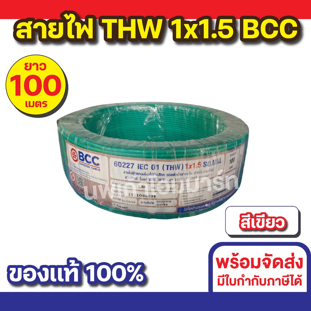 BCC สายไฟ THW 1x1.5 (100M) ทุกสี
