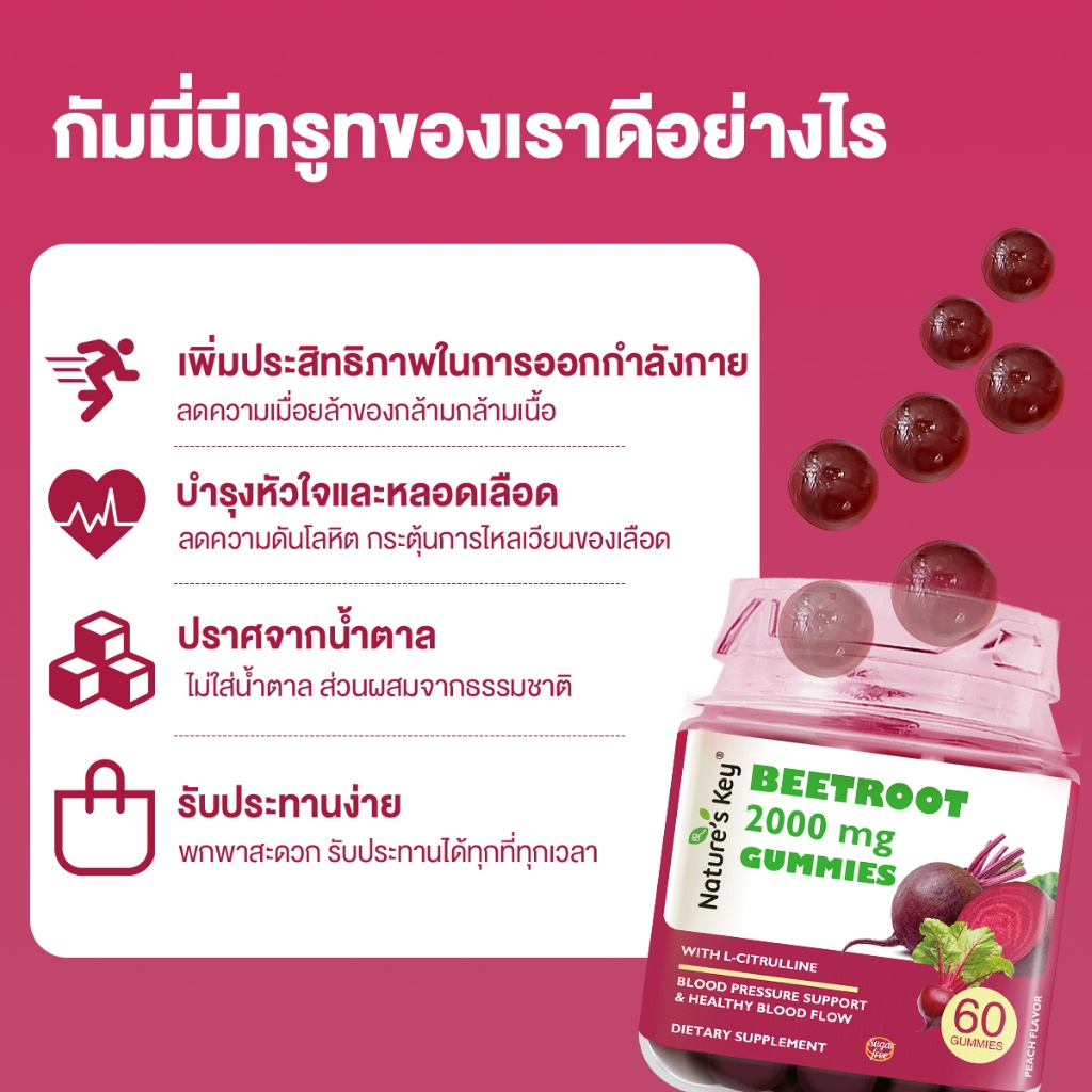 Nature's Key Beetroot Gummies กัมมี่บีทรูท บำรุงเลือด ดูแลหัวใจ สูตรไม่มีน้ำตาล ช่วยดูแลความดันโลหิต
