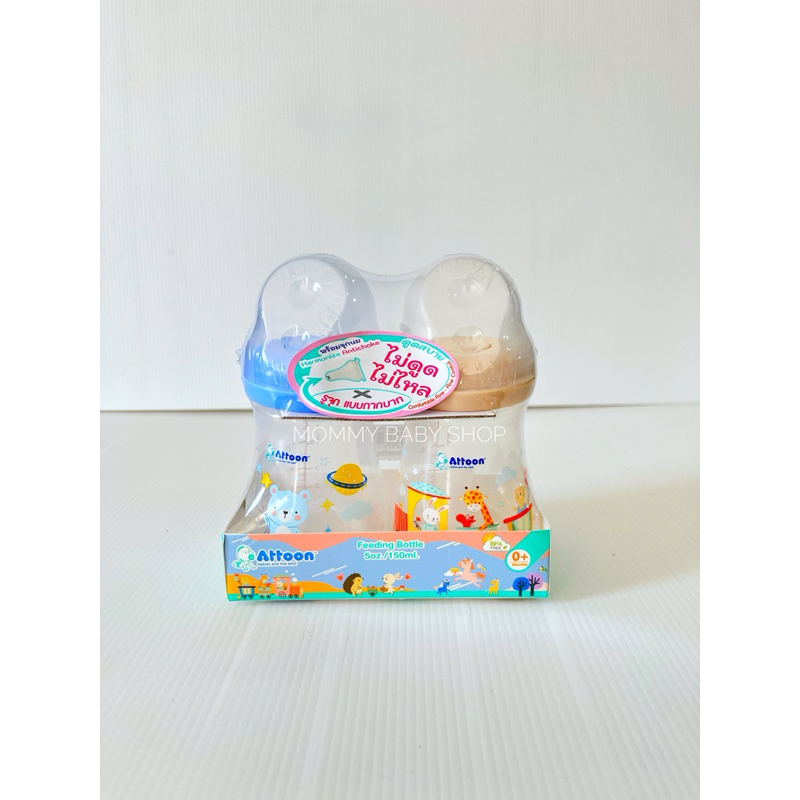 Attoon (แพคคู่ 2 ขวด) ขวดนมคอแคบ PP พร้อมจุกไม่ดูดไม่ไหล