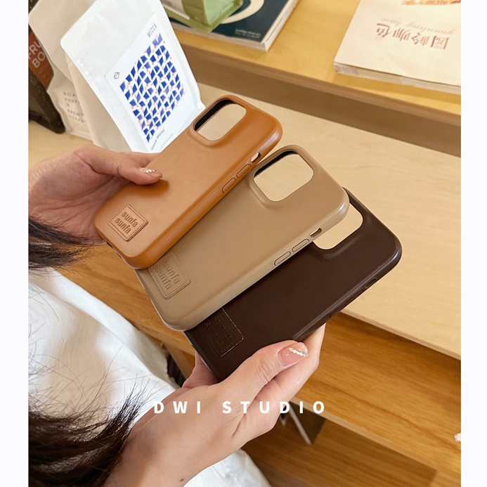 เกาหลี อิน วินเทจช็อคโกแลตสีน้ําตาลฮาร์ดหนังกรณีโทรศัพท์สําหรับ ไอโฟน 17โปรแม็กซ์ 16โปรแม็กซ์ 13 14 15 มือโปร สูงสุด กันกระแทกป้องกันเต็มธรรมดาสาวมือถือปกปลอก