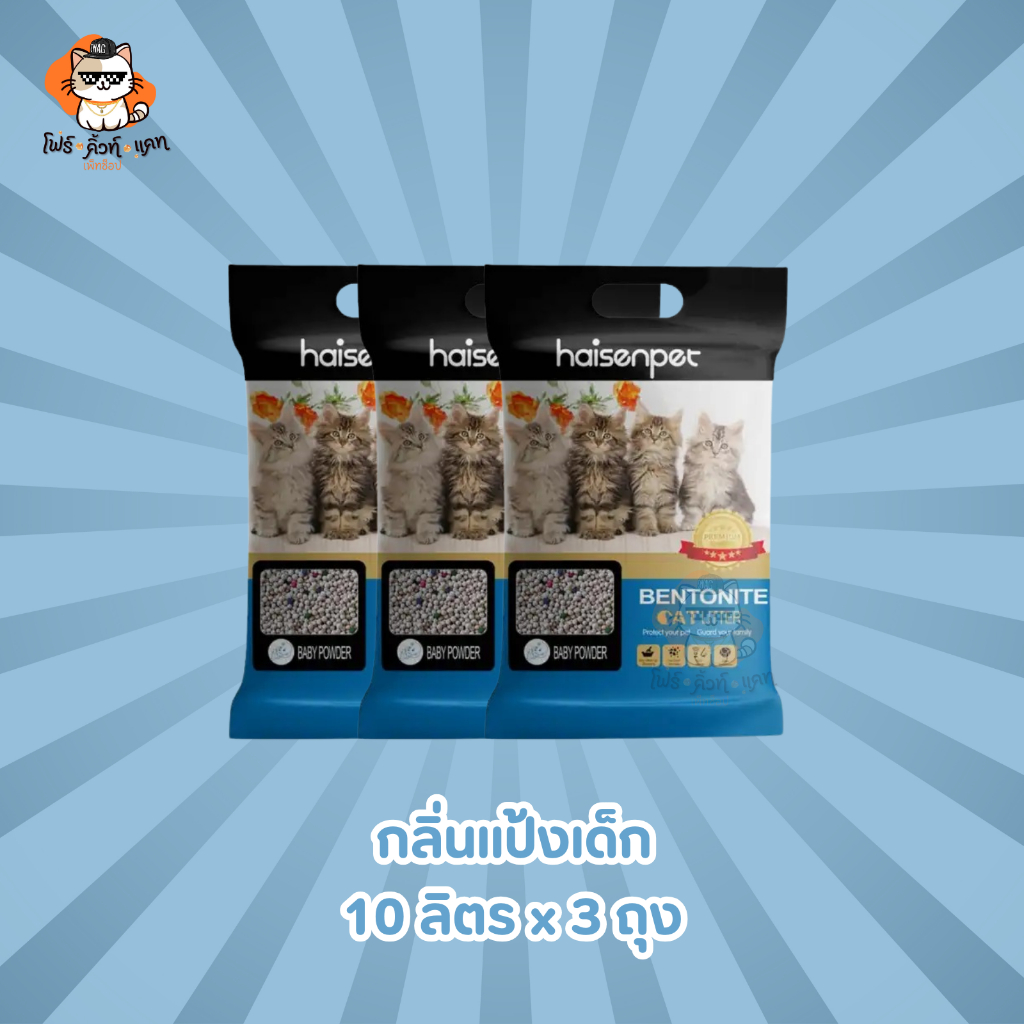 ทรายแมว Haisenpet ทรายเบนโทไนท์ขนาด 10 ลิตร x 3 ถุง (30ลิตร) กลิ่นหอมยาวนาน จับตัวได้ดี ไม่ติดกระบะ
