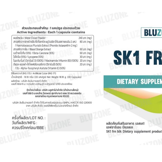Bluzone SK1 FERN BLOCK วิตามินกันแดด (water clover + astaxanthin)