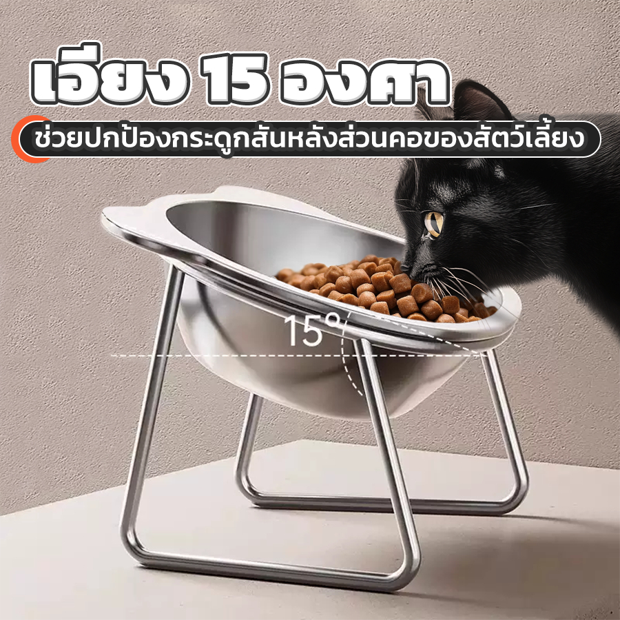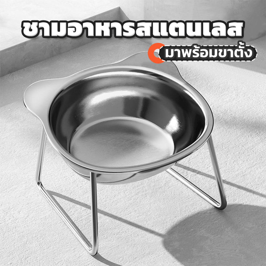 Petus ชาม ชามอาหารสัตว์เลี้ยง ชามสแตนเลส มีขาตั้งชามเอียง 15 องศา ทนทาน ขนาดสินค้า 12.5x11x11.5 ซม.