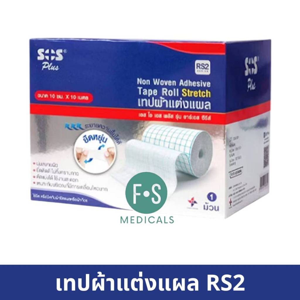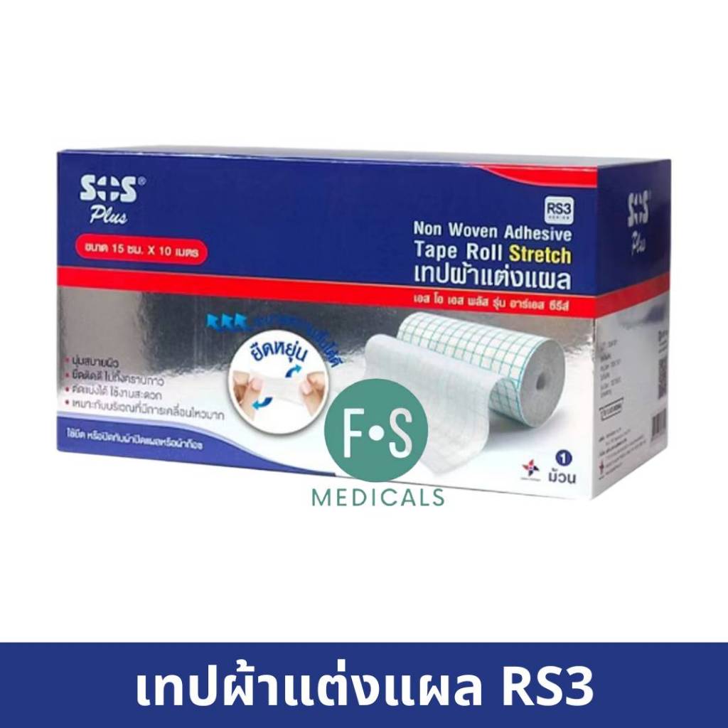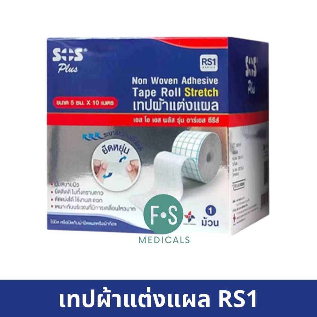 ล็อตใหม่!! SOS RS1 : RS2 : RS3 Plus Non Woven Adhesive Tape Roll เทปผ้าแต่งแผลแบบม้วน สีน้ำเงิน มี 3 ขนาด (1 กล่อง)