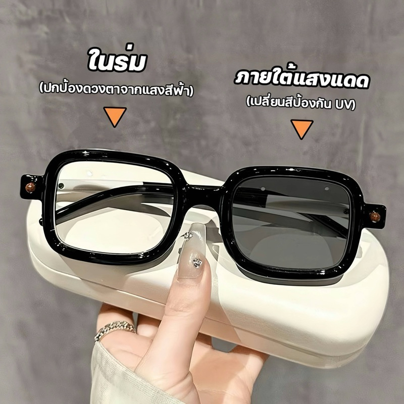 แว่นแฟชั่น แว่นตาสายตายาว 005BS ปรับแสงเลนส์Auto ได้เปลี่ยนสีเมื่อออกแดด เลนส์BlueBlock แว่นกรองแสง ComputerGlasses
