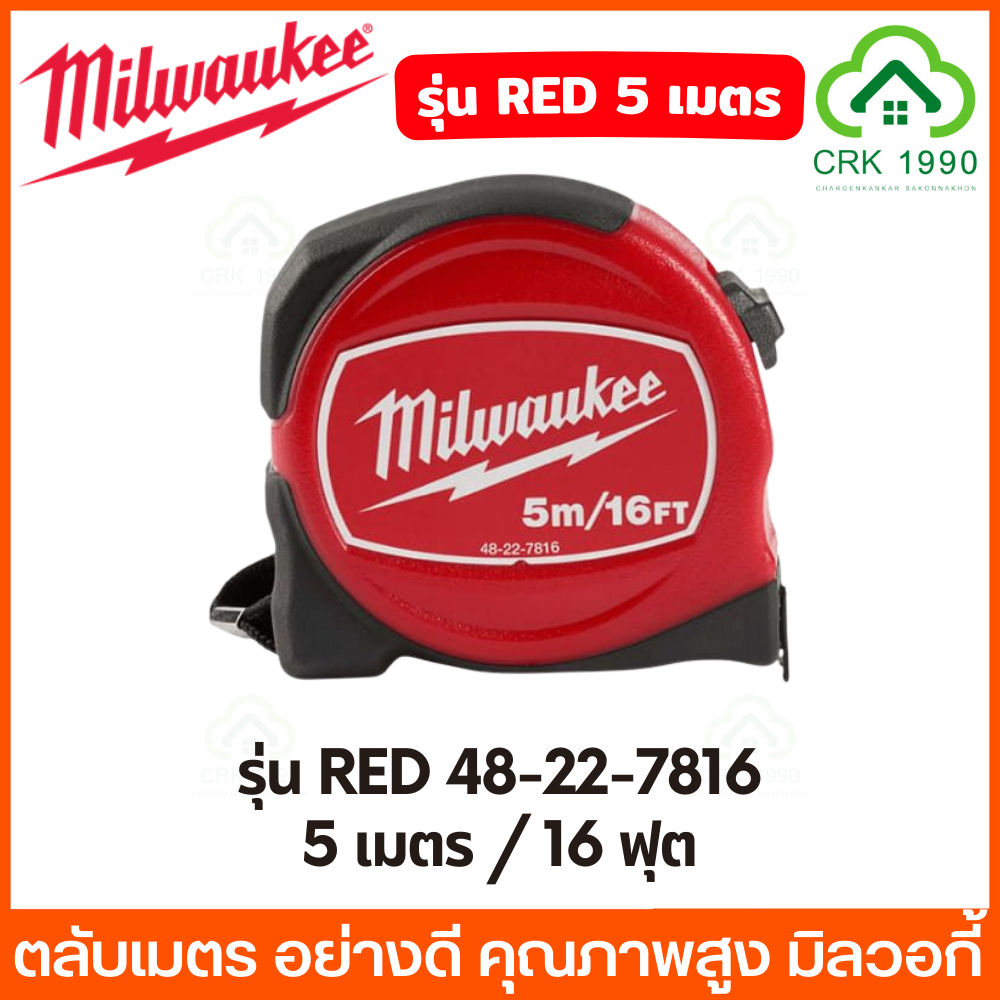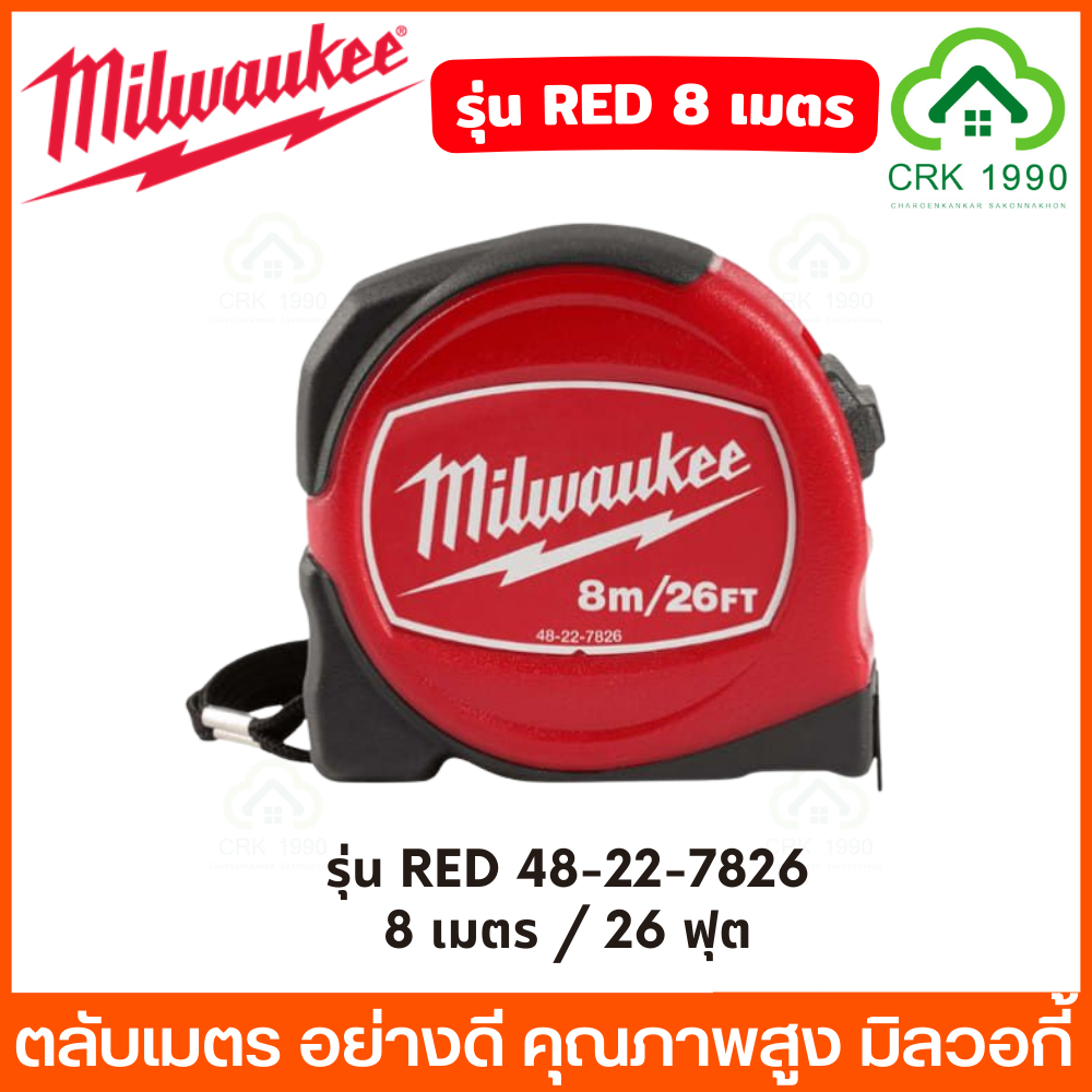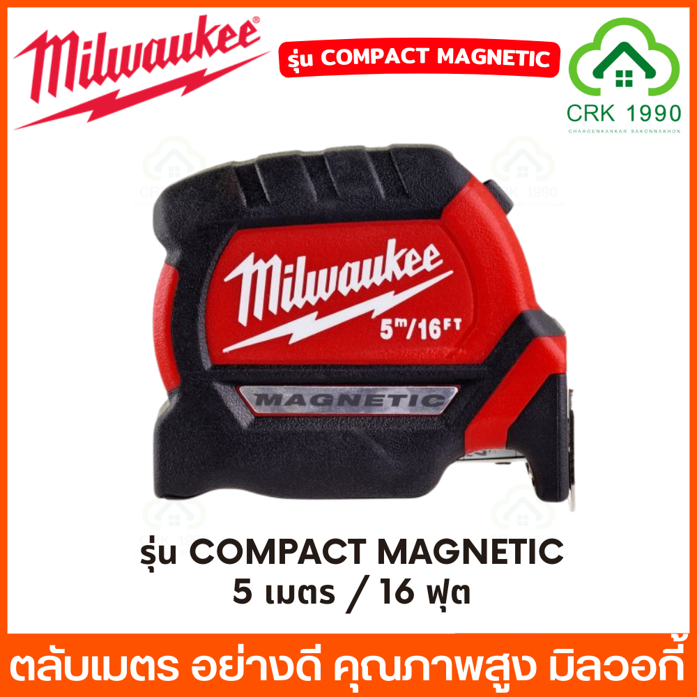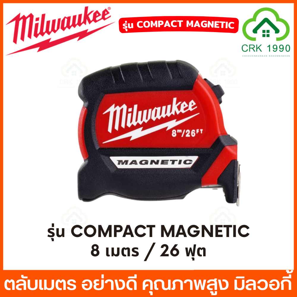 Milwaukee รุ่น Compact Magnetic , Red ตลับเมตร ปลายแม่เหล็ก เคลือบไนล่อนทนทาน 10 เท่า สามารถดูได้สองด้าน