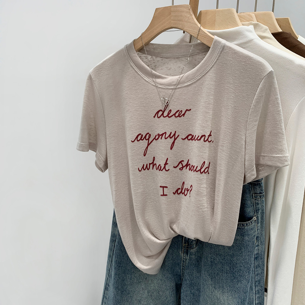 88859 เสื้อยืดแขนสั้นหลวมพิมพ์ลายตัวอักษรสบายระบายอากาศได้