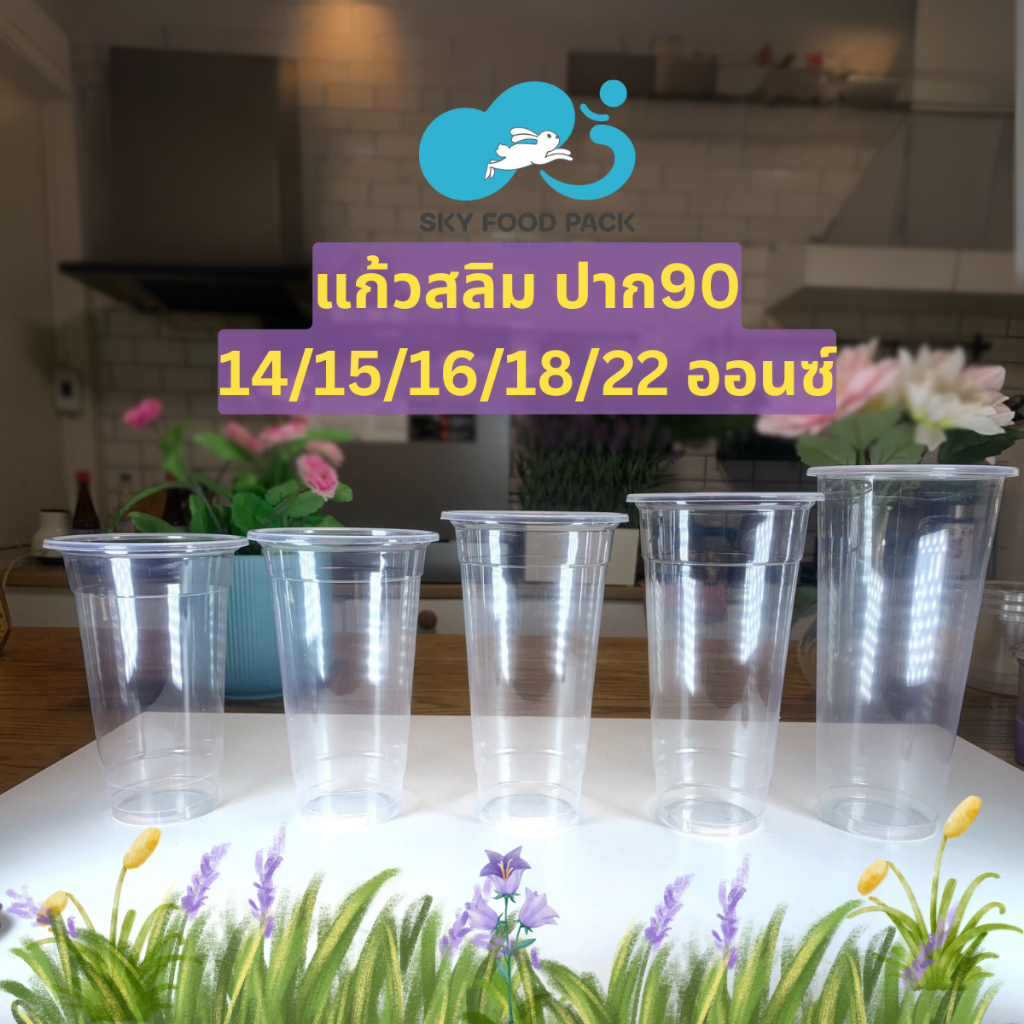 แก้วทรงสลิม14ออนซ์/15ออนซ์/16ออนซ์/18ออนซ์/22ออนซ์/ ปาก90 แก้วพลาสติก แก้วทรงสูง แก้วปาก90