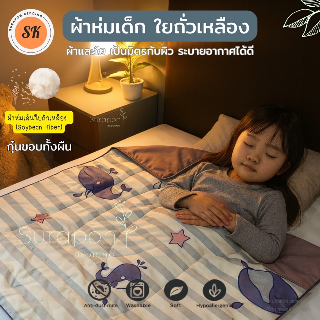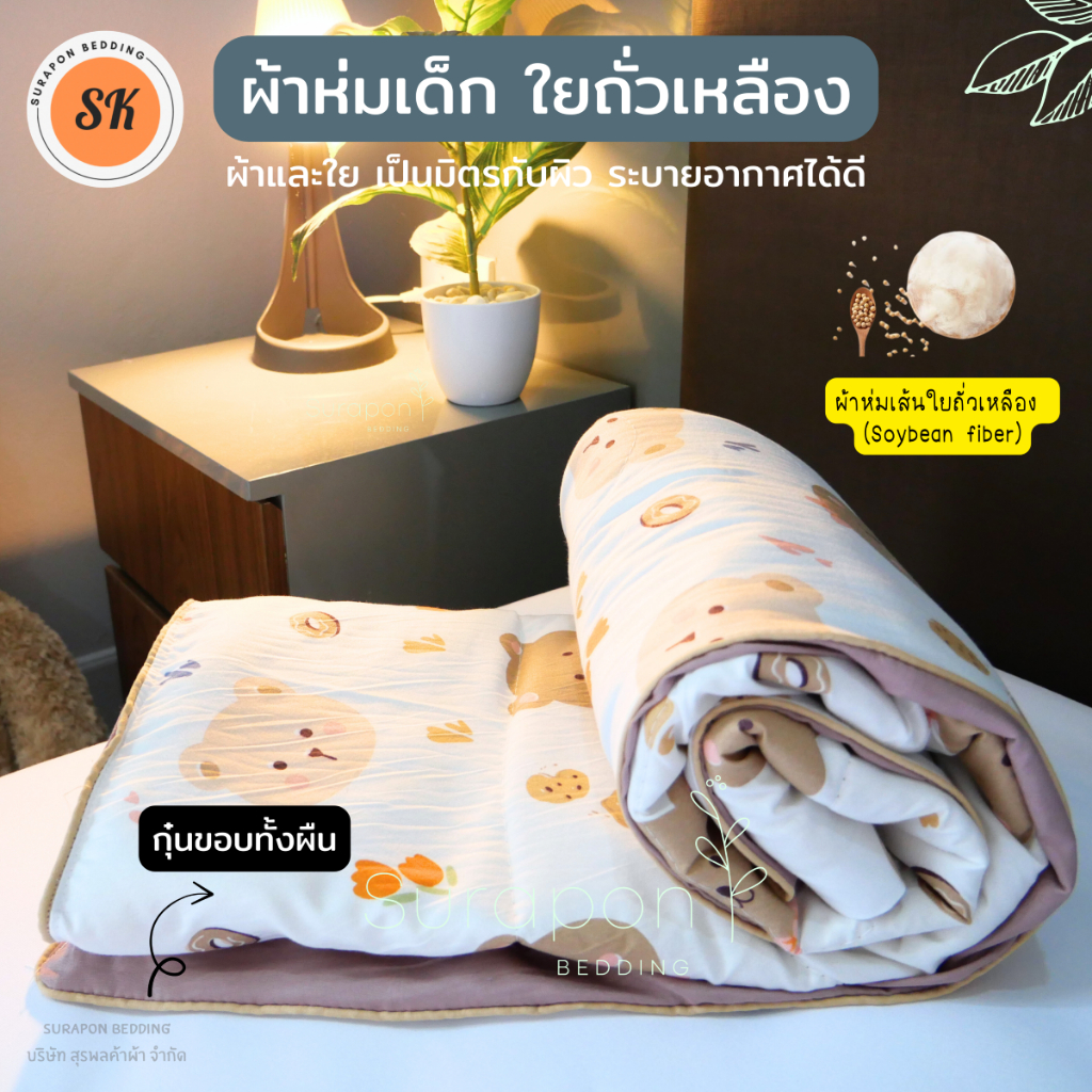 Surapon : ผ้าห่มนวมเด็ก ใยถั่วเหลือง กุ๊นขอบ (Soybean fiber) ขนาด 80 * 110 cm.