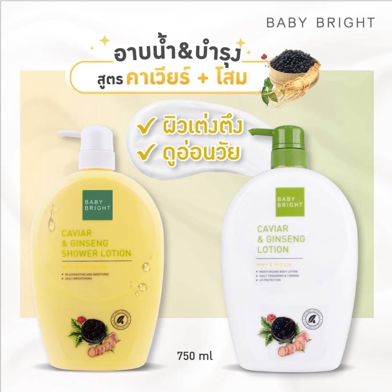Baby Bright เบบี้ไบร์ท โลชั่น 750 มล. คาเวียร์&จินเส็ง / กลูต้าไธโอน&วิตซี / โกทท์มิลค์&คอลลาเจน / แซลมอน ไวท์ซัน