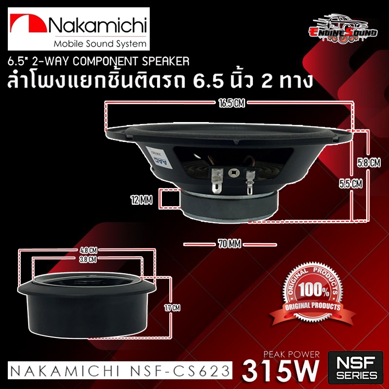 [แบรนด์ดัง เสียงเพราะ] ของแท้ NAKAMICHI รุ่น CS623 ลำโพงแยกชิ้น 2 ทางและลำโพงแกนร่วม NSF623 ขนาด 6.5 นิ้ว เสียงดีไพเราะ
