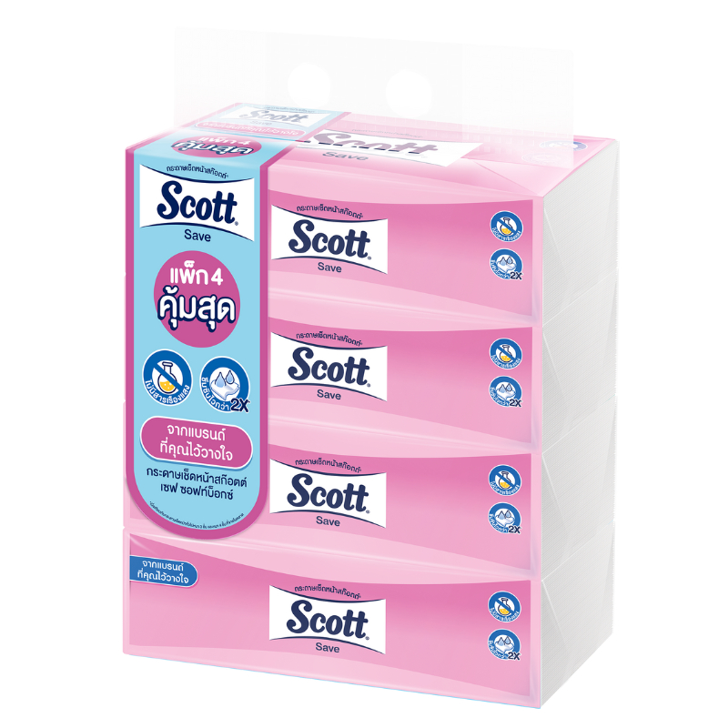 กระดาษเช็ดหน้า สก๊อตต์® เซฟ ซอฟท์ บ๊อกซ์ 160 แผ่น 4 ห่อ x3 แพ็ค Scott® Save Soft Box 160 sheets x3 packs