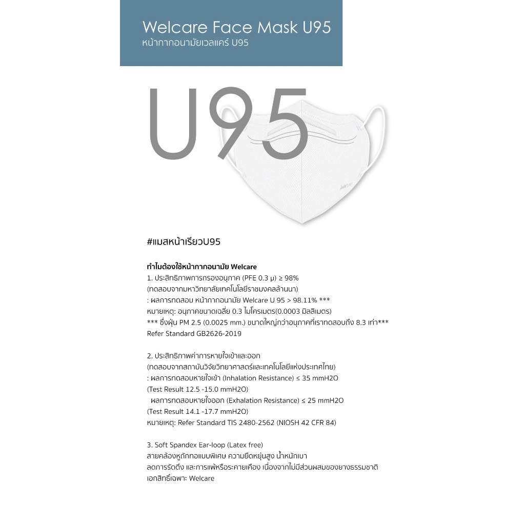 Ⓜ️พร้อมส่ง🅾️ Welcare Face Mask U-95 🤍10 PC/BOX หน้ากากกรองฝุ่นเวลแคร์ U-95