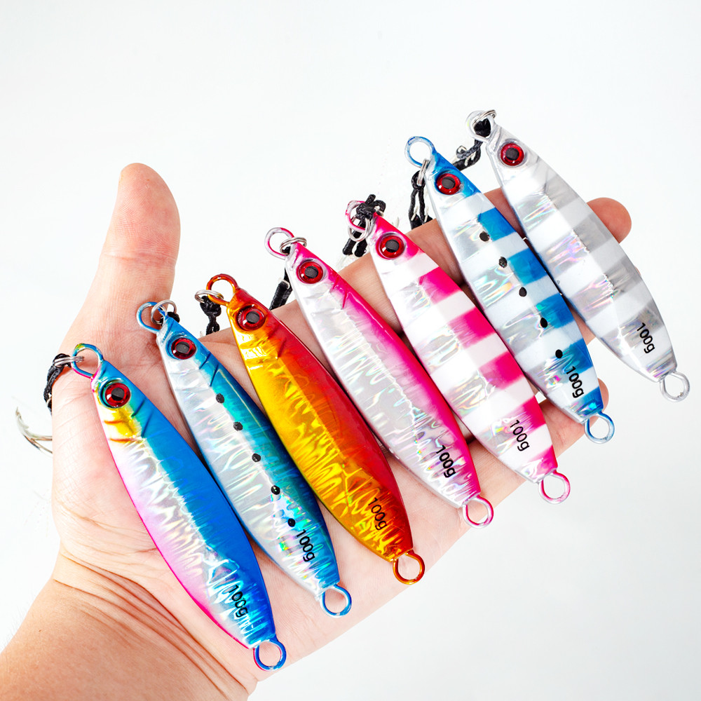 โลหะ Jig Fishing Lure 14-100g ช้า Sinking Jigging ตะกั่วหล่อเหยื่อเรืองแสงในที่มืดกับ Assist Hooks Jig Deep Sea Fishing Jigging ช้อนล่อสําหรับปลาทูน่าปลาแซลมอน Grouper Snapper Kingfi