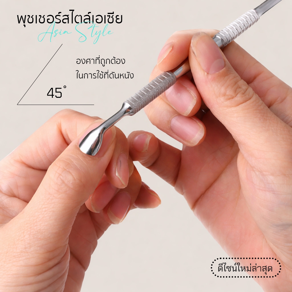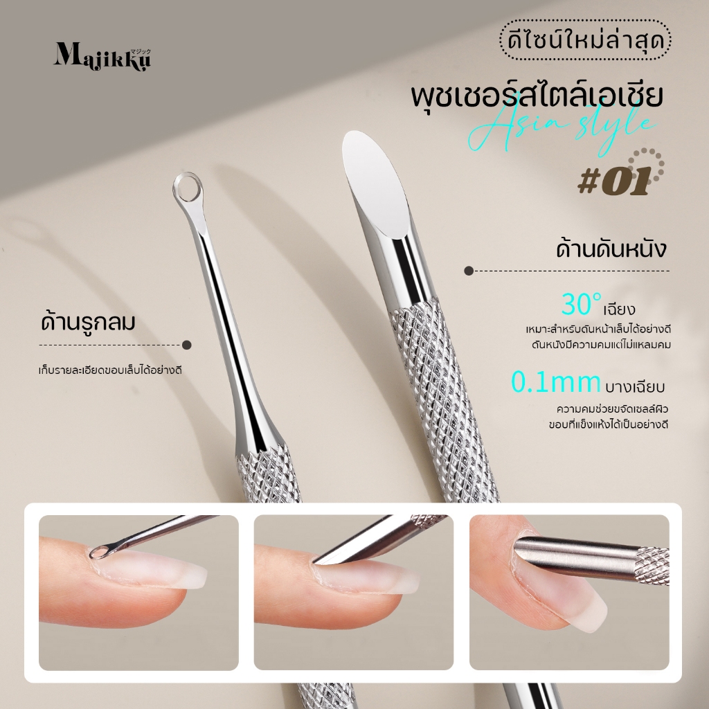 Majikku Cuticle Pusher ไม้ดันหนังสไตล์เอเซีย ที่ดันหนัง ที่ขูดเจล พุชเชอร์ สแตนเลสดีใช้งานได้สองด้าน