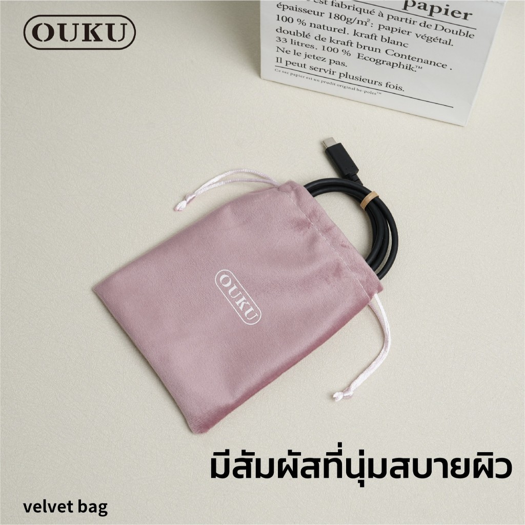 กระเป๋าหูรูดผ้ากำมะหยี่ OUKU VELVET BAG กระเป๋าพาวเวอร์แบงค์ สีสัน สําหรับเก็บใส่แบตสำรอง สายชาร์จ