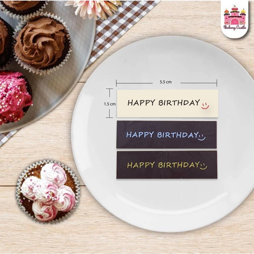 ป้ายช็อคโกแลต Happy Birthday (20ชิ้น) (เหลี่ยม 5.5x1.5ซม.) (สินค้าไม่รับประกันการละลาย) สำหรับตกแต่งเค้ก