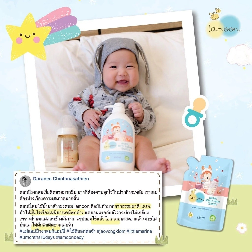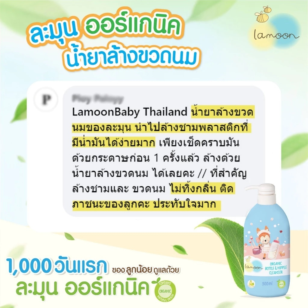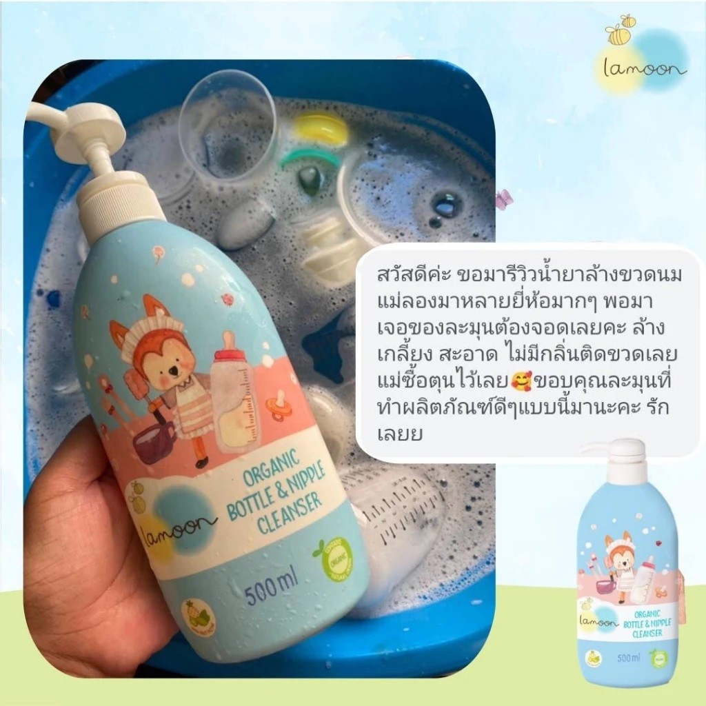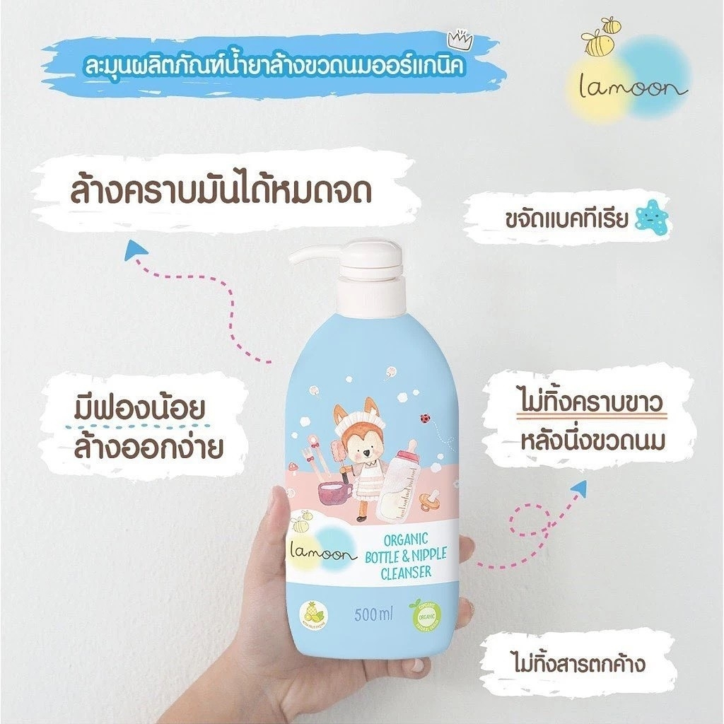 ส่งด่วน ล็อตใหม่ ละมุน Lamoon น้ำยาล้างขวดนม ออร์แกนิค แบบหัวปั๊ม(500ml) /รีฟิล(450ml)