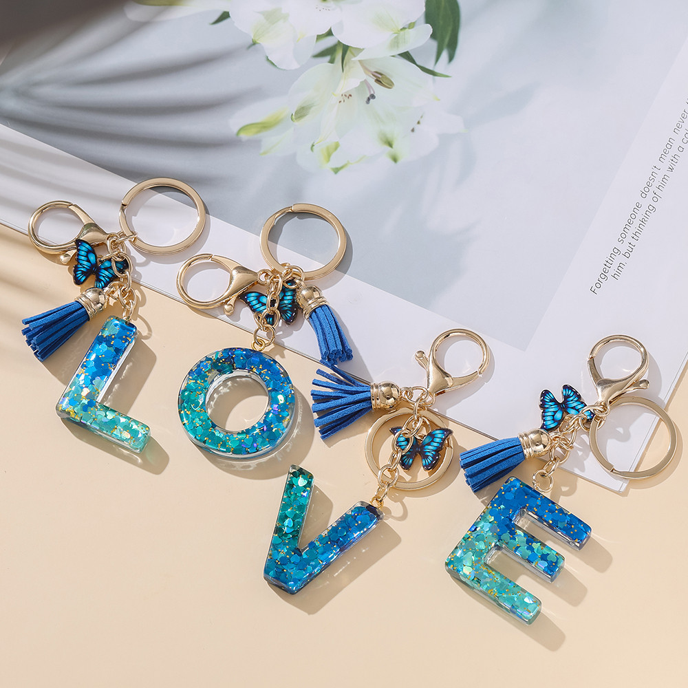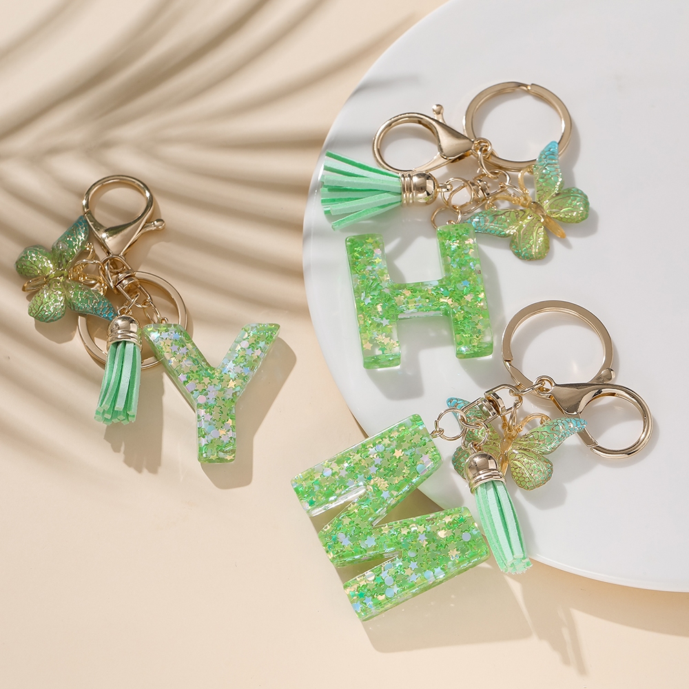 St.kunkka A-Zตัวอักษรพวงกุญแจ จี้ผีเสื้อ จี้ตัวอักษรอีพ็อกซี่ ภาษาอังกฤษพวงกุญแจผีเสื้อพู่เครื่องประดับอุปกรณ์เสริมพวงกุญแจ กระเป๋าแขวนพวงกุญแจรถ