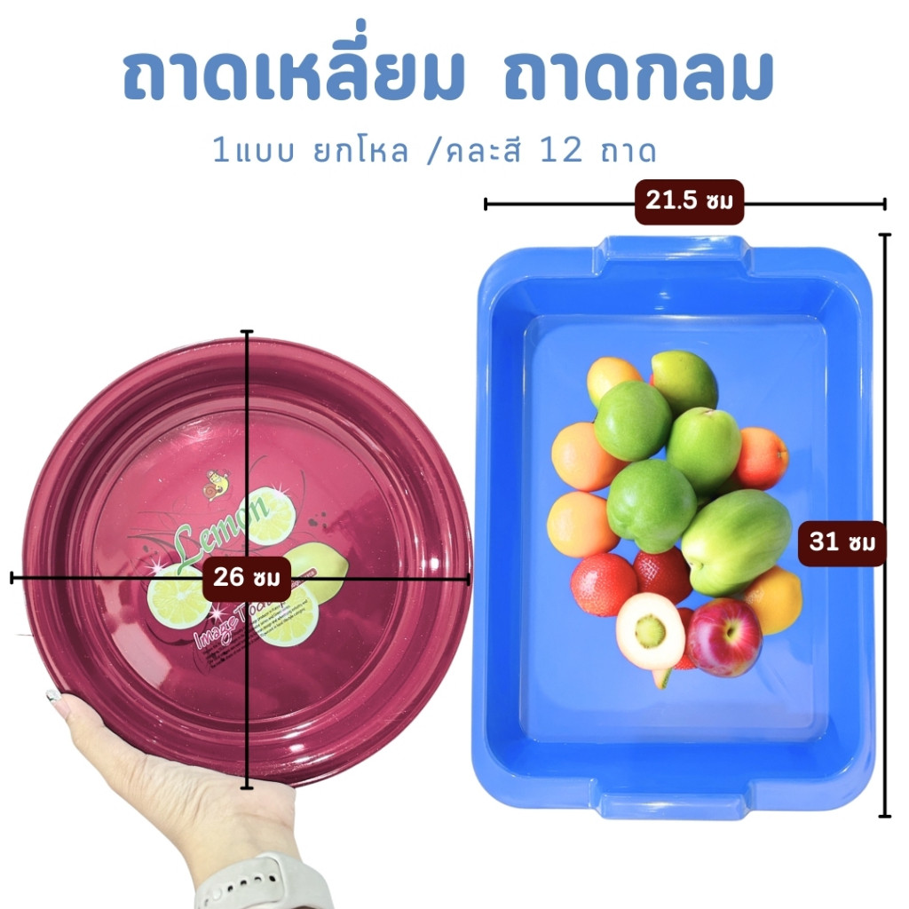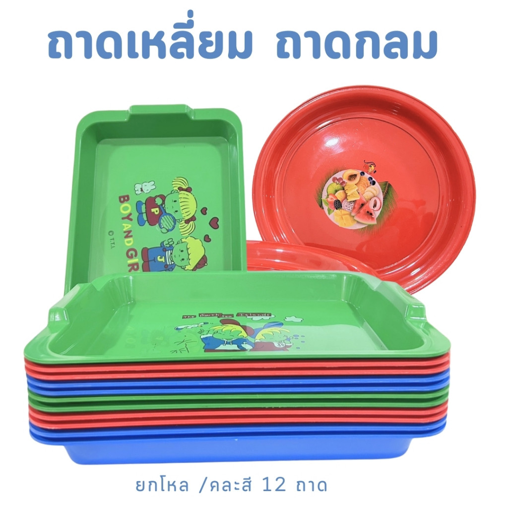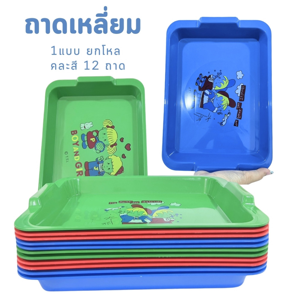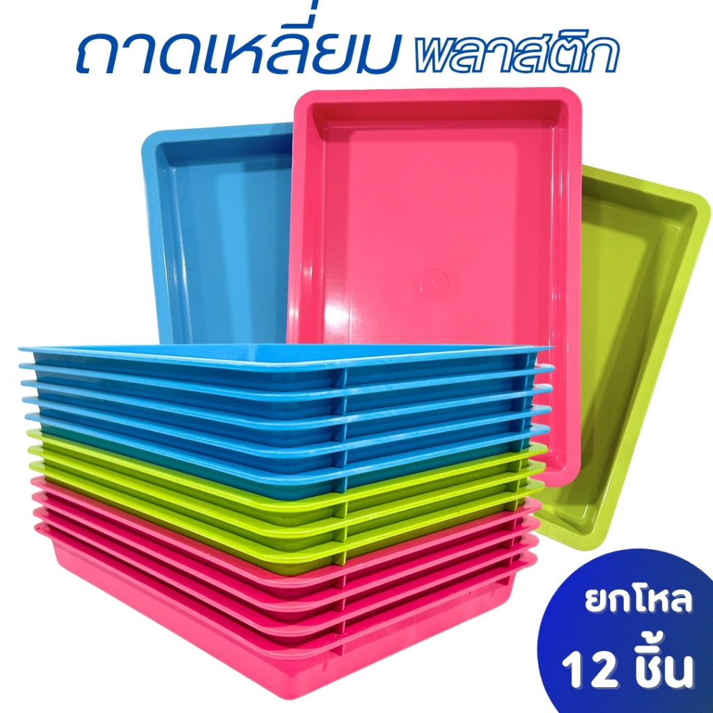 ถาดสี่เหลี่ยม ถาดเสริฟอาหาร ถาดพลาสติก มี 7 แบบ ถาดใส่ผลไม้ ถาดสีมินิมอล ยกโหล คละสี พร้อมจัดส่ง