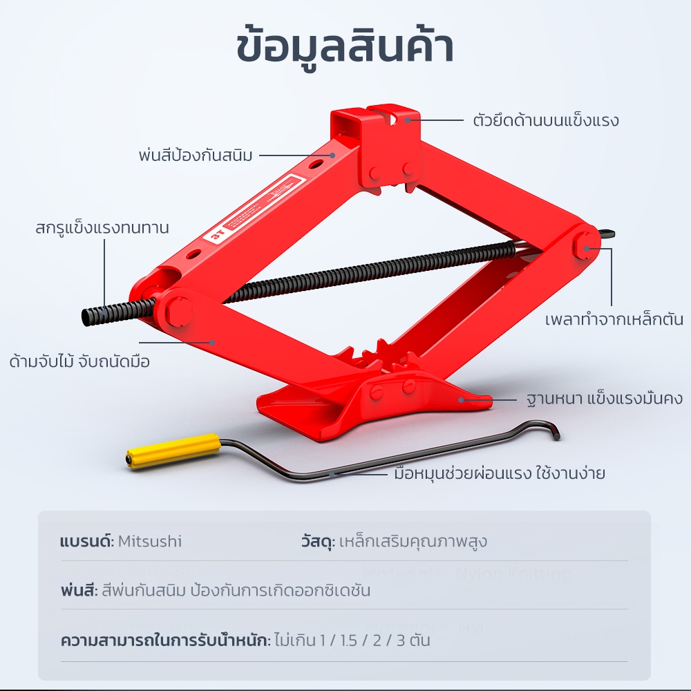 Mitsushi แม่แรง สะพาน 3ตัน แม่แรง ยกรถ แม่แรงสะพาน แม่แรงยกรถ แม่แรงยกรถยนต์ SUVพร้อมด้ามจับแบบข้อเหวี่ยง