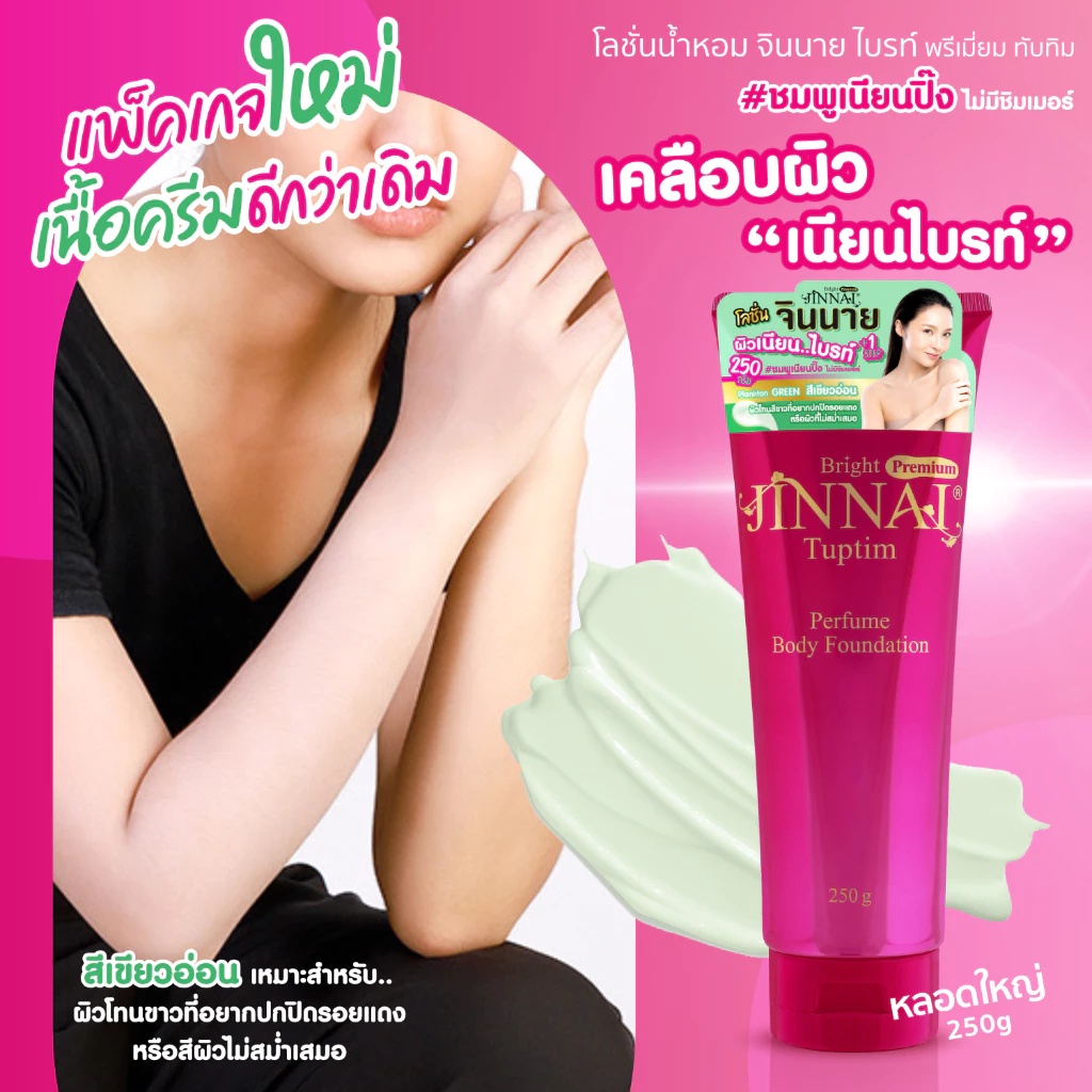 (แพ็คเกจใหม่) JINNAI จินนายโลชั่น เคลือบผิวขาว หลอดชมพูไม่มีชิมเมอร์ #ชมพูเนียนปิ๊ง 80/250 g.