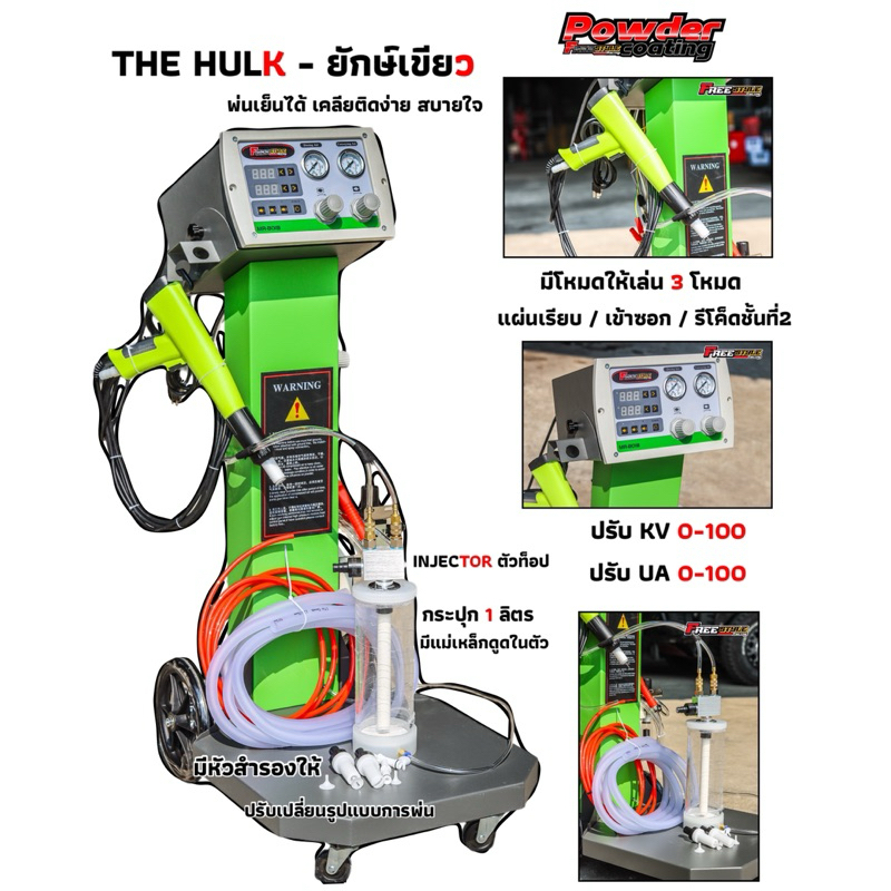 The Hluk เครื่องพ่นสีพาวเดอร์โค็ท ตัวเขียว อุปกรณ์ครบพร้อมใช้งาน ใช้แล้วจะติดใจพ่นได้ทุกเลเยอร์เฉียบ