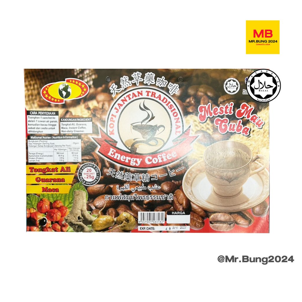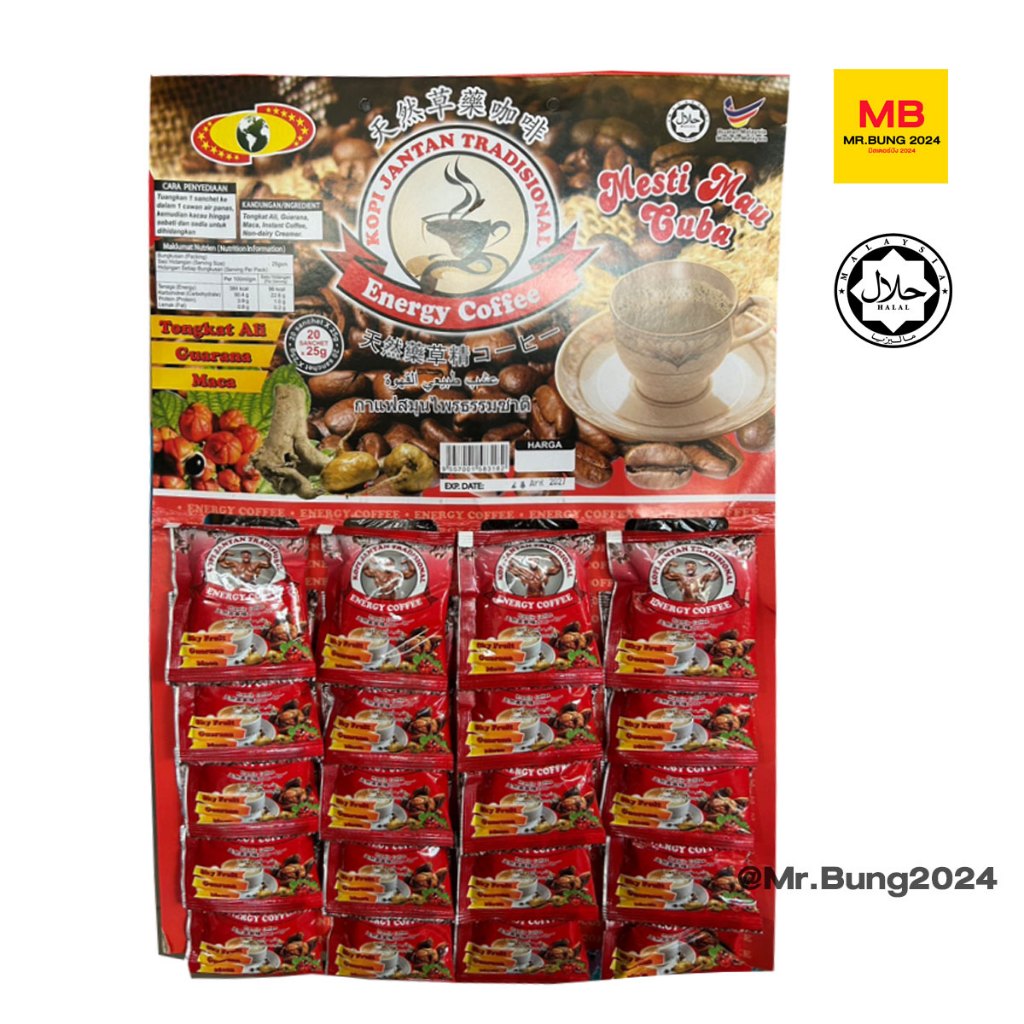 Energy Coffee กาแฟปึ๋งปั๋ง กาแฟสมุนไพรธรรชาติ กาแฟสำเร็จรูปสำหรับท่านชาย ไม่ผสมครีมเทียม ตราคนยกกล้าม ซองละ 25 กรัม