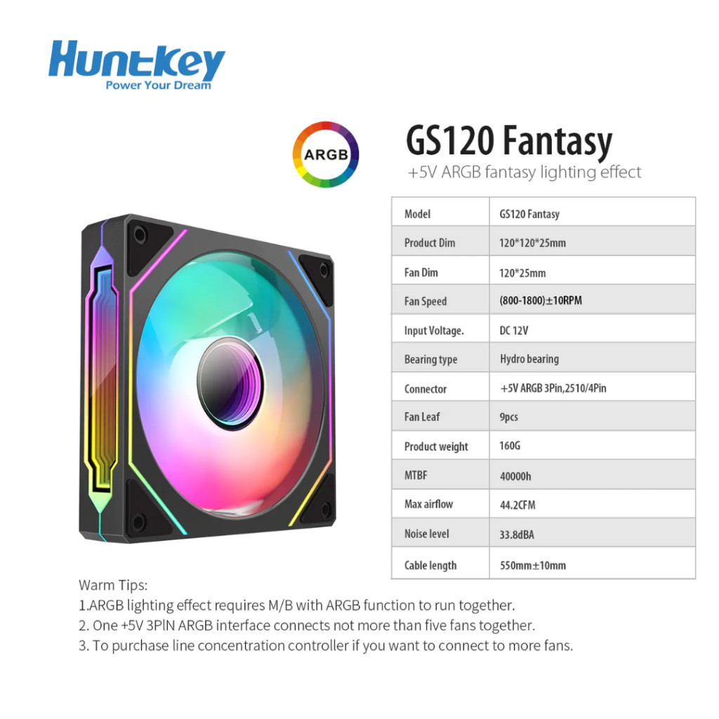 (มีส่งด่วน) HUNTKEY พัดลมเคสคอมพิวเตอร์ GS120/GS120F Fantasy รับประกัน 1 ปี