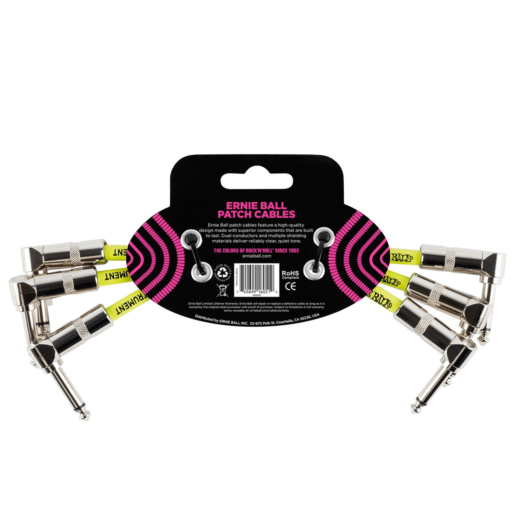 Ernie Ball ® 6" Patch Cable สายพ่วงเอฟเฟค / สายแจ็คต่อเอฟเฟค ยาว 15 ซม. (1 แพ็คมี 3 เส้น) P06051 * USA Brand *..