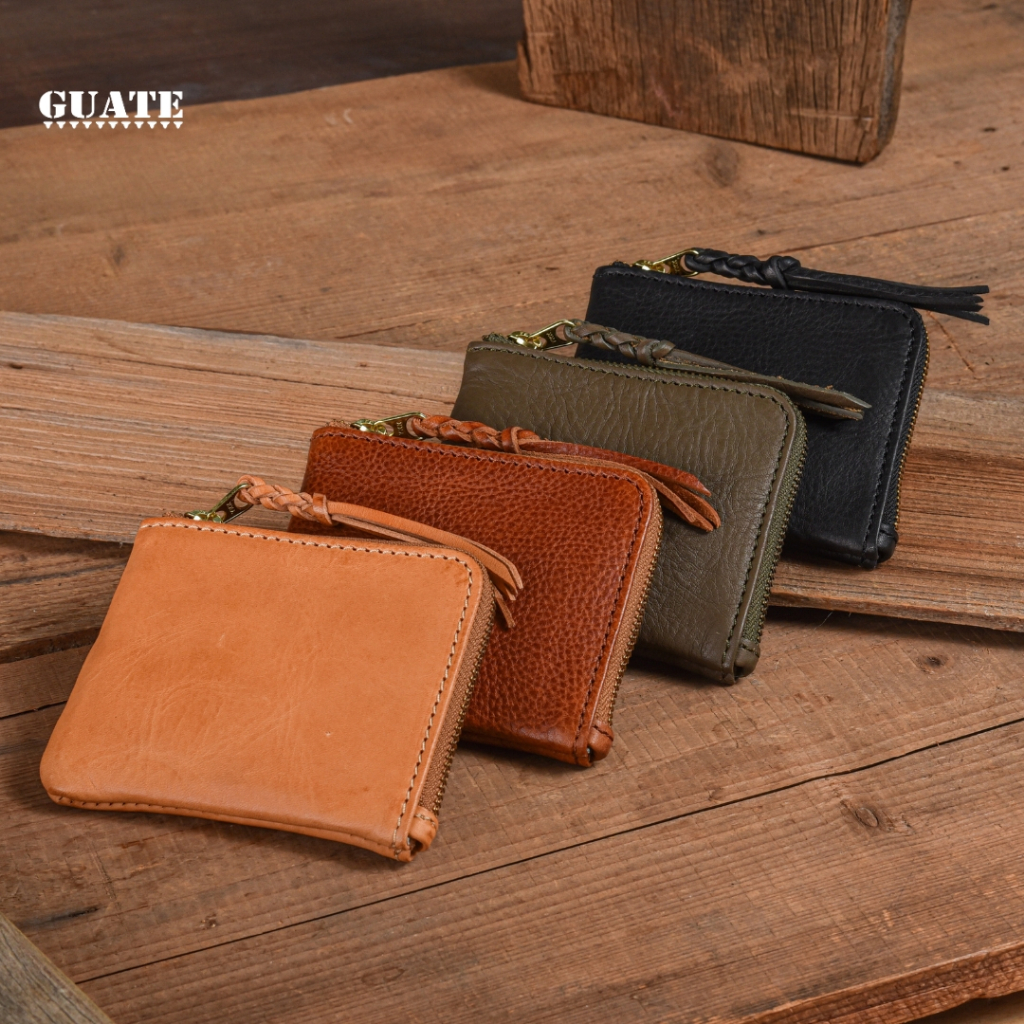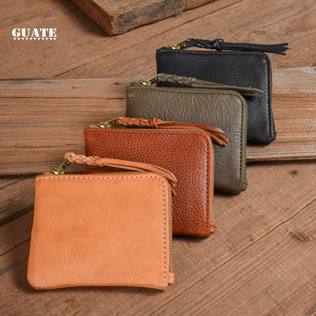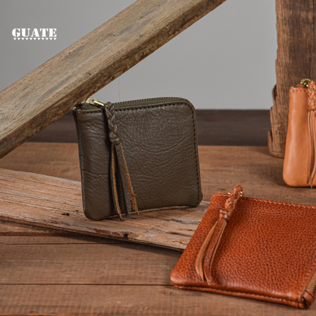 GUATE - Wallet MLT08 กระเป๋าสตางค์ใบสั้นหนังแท้ หนังวัว เปิดปิดด้วยซิป เท่ เรียบง่าย