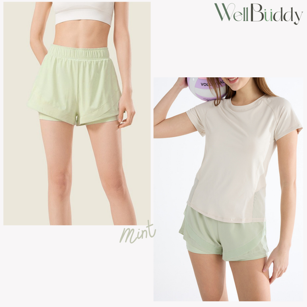 WellBuddy กางเกงวิ่งผู้หญิง มีซับในกันโป๊ ใส่มือถือได้ กางเกงออกกำลังกายขาสั้น (Cotton Cloud Pants)