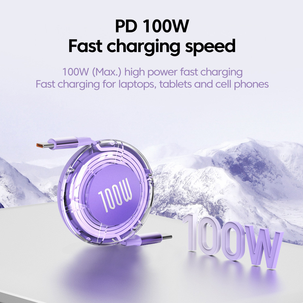 Twitch 1M 100W Retractable USB C สาย PD100W ประเภท C ถึง Type C Fast สายชาร์จสําหรับโทรศัพท์มือถือแล็ปท็อปแท็บเล็ตข้อมูลสายไฟ