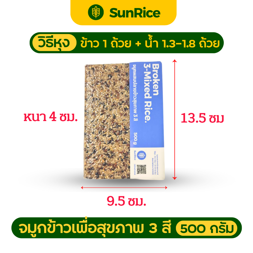 จมูกข้าว 3 สี ข้าวเพื่อสุขภาพ ข้าวท่อน ปลายข้าว ข้าว3สี ขนาด 500 กรัม ตรา SunRice [[[[ S-จมูก3สี-500g ]]]]