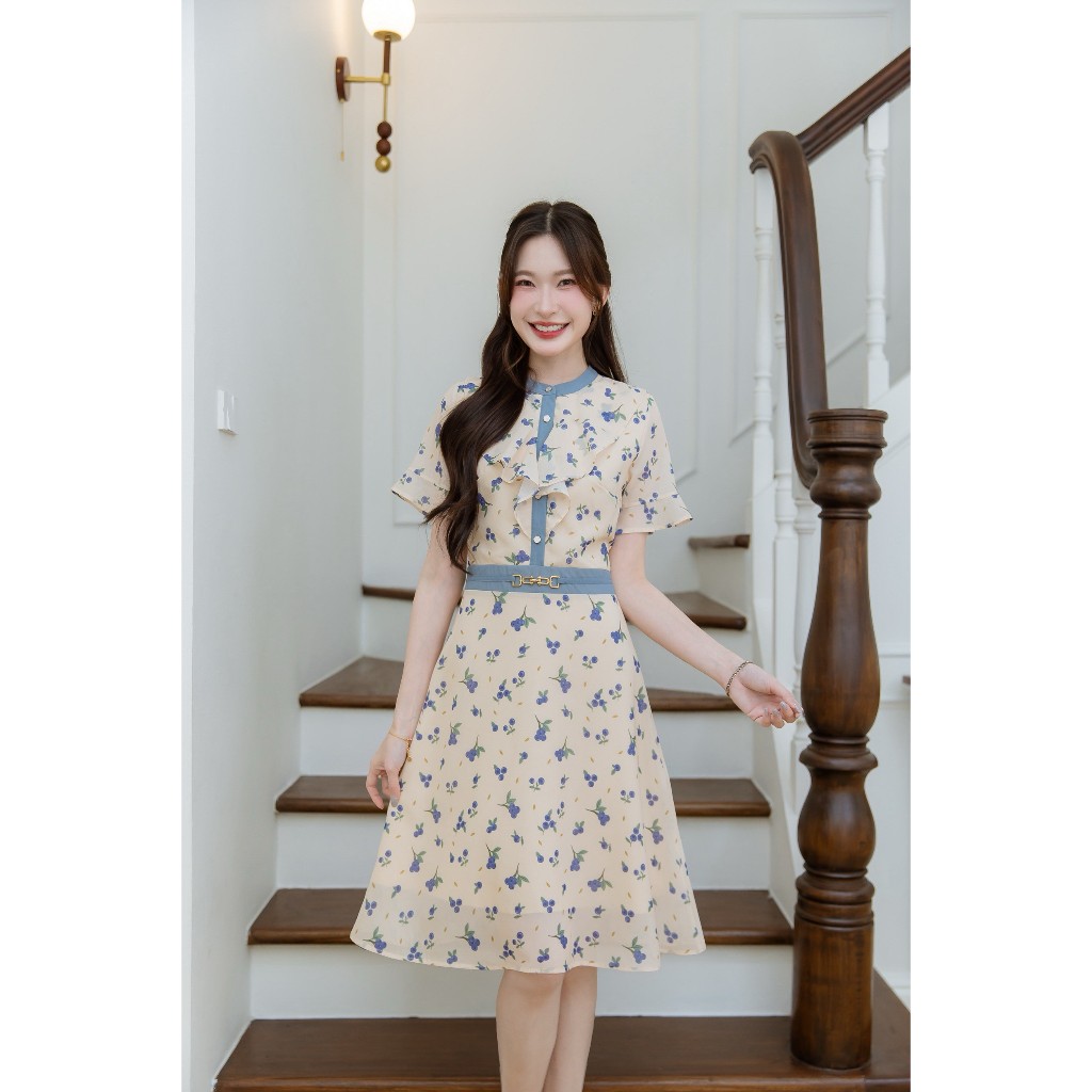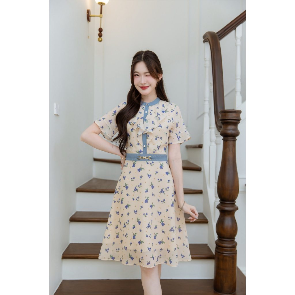 เดรสชีฟอง บลูเบอร์รี่ 🫐 ลายน่ารัก พิมพ์ลายเองสวยดูลุคสะอาดตา แพทเทิร์นสวย มีดีเทลระบายช่วงไหล่ถึงอกเป็นกระดุมหน้าเปิดได้