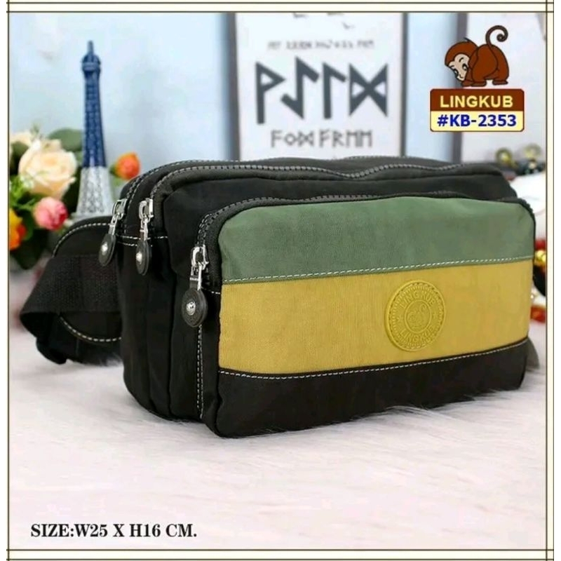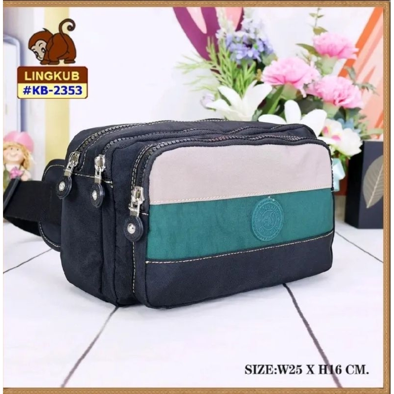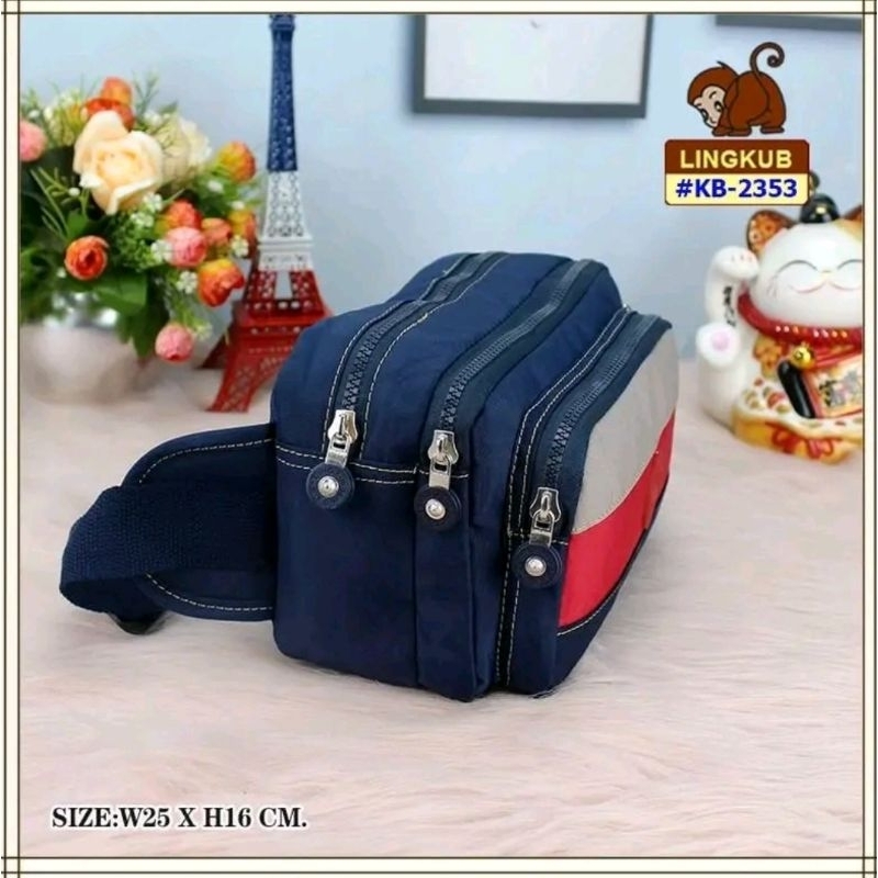 Lingkub kb-2353 กระเป๋าคาดอก,คาดเอว ขนาด ฐาน10 นิ้ว 5 ช่องซิป #คุณยายขายกระเป๋า