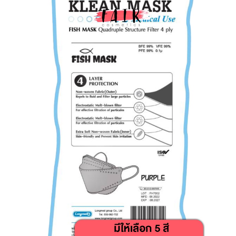 Longmed Klean Mask Medical Use หน้ากากอนามัย คลีน มาสก์ กรอง 4 ชั้น [10 ชิ้น][มีให้เลือก 5 สี] หน้ากาก เกรดทางการแพทย์