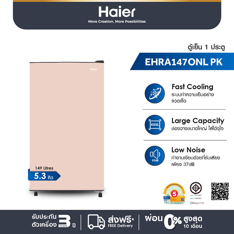 Haier ตู้เย็น 1 ประตู ความจุ 5.3 คิว/149 ลิตร รุ่น EHRA147ONL